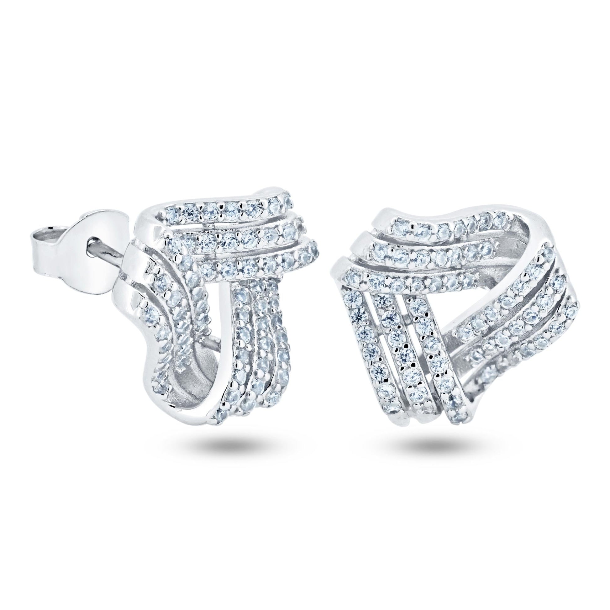 Rhodium Plated 925 Sterling Silver 3 Layer Knot CZ Stud Earrings - BGE00743