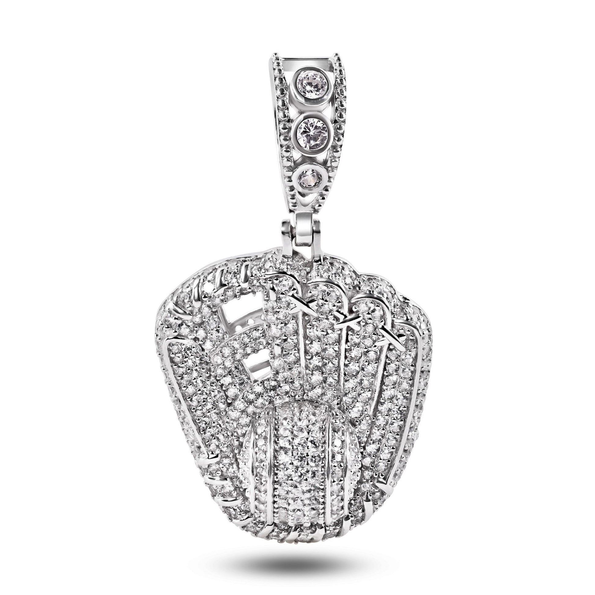 Rhodium Plated 925 Sterling Silver Baseball Gloves Clear CZ Pendant - SLP00170
