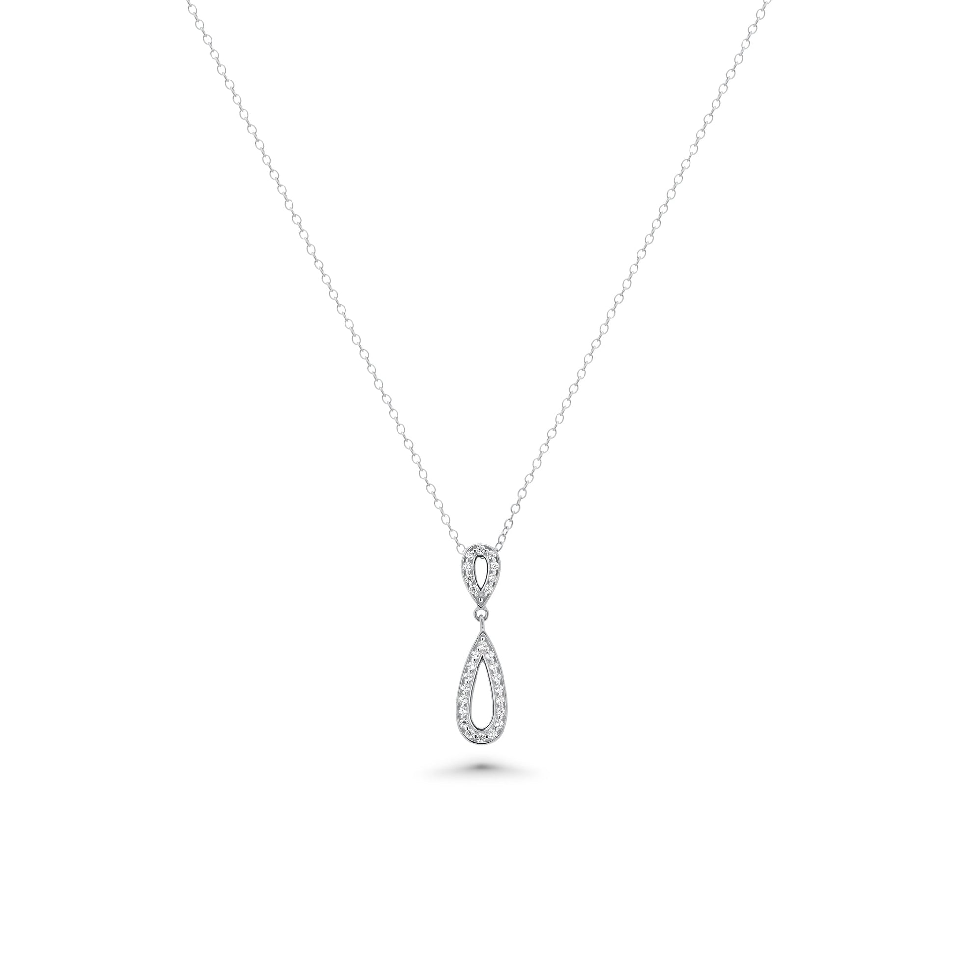Wholesale Sterling Silver 925 Rhodium Plated Clear Open Teardrop CZ Dangling Stud Earring and Dangling Necklace Set