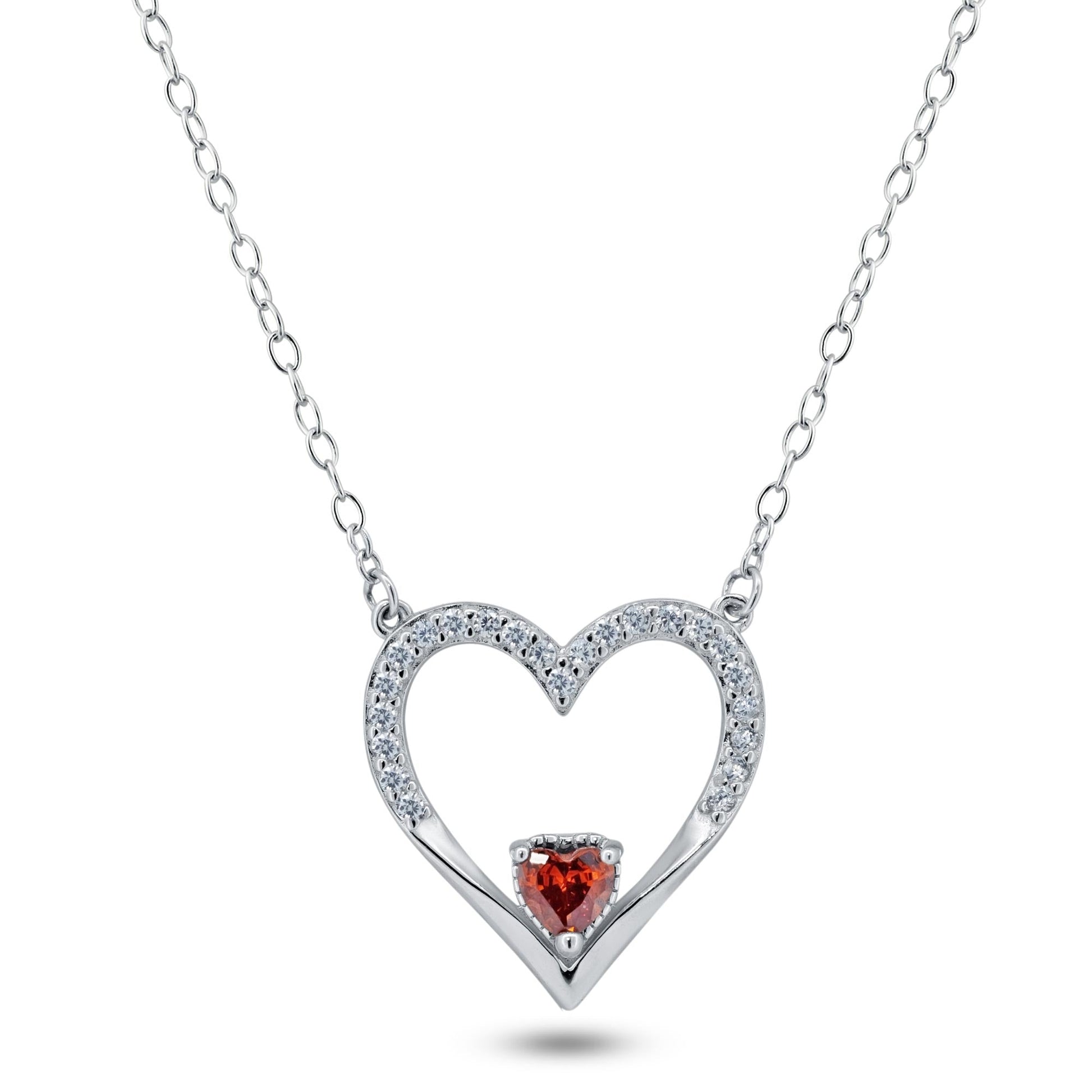 Rhodium Plated 925 Sterling Silver Clear Red CZ Open Heart Necklace - BGP01477