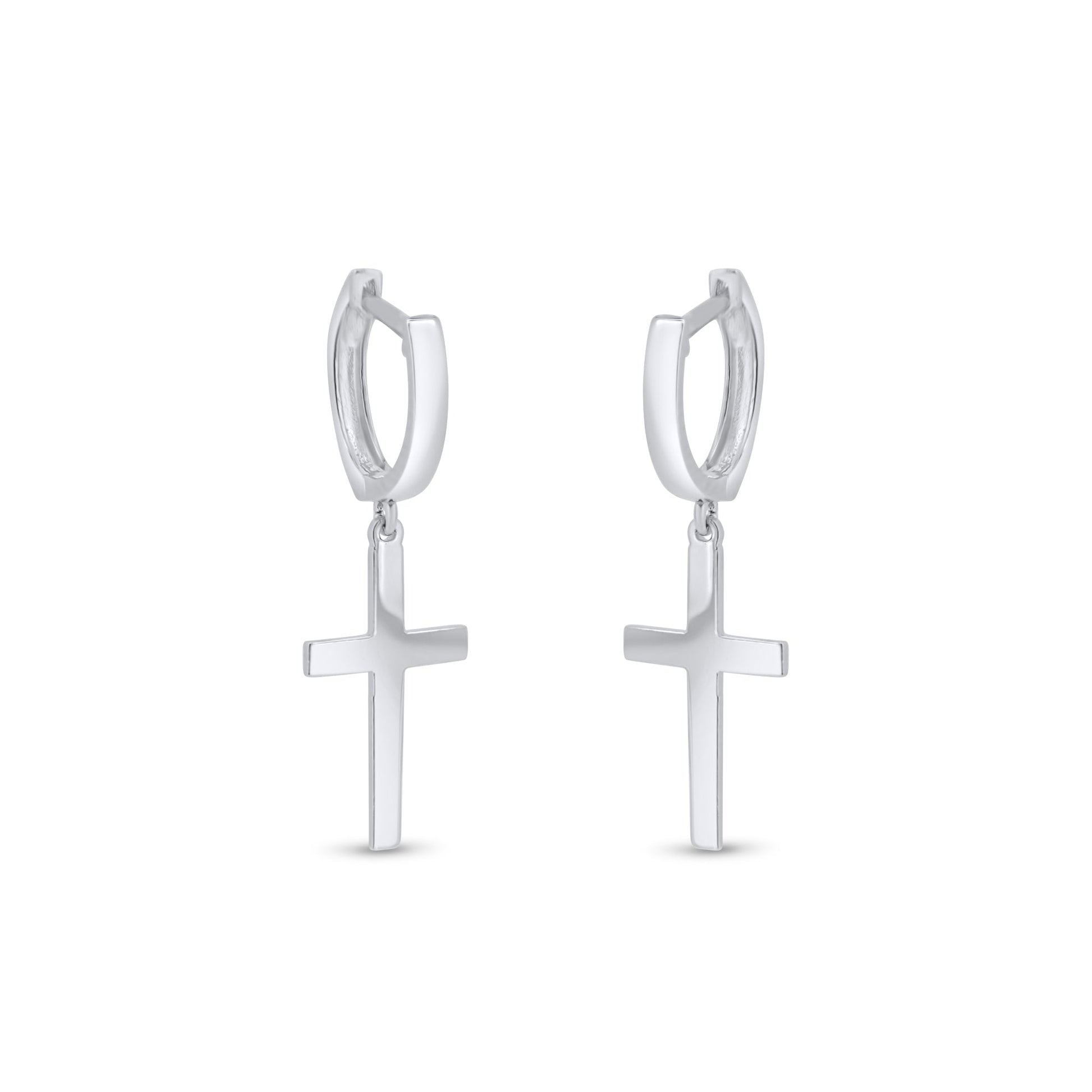 Rhodium Plated 925 Sterling Silver Cross 10mm Hoop Huggie Earrings - GME00147