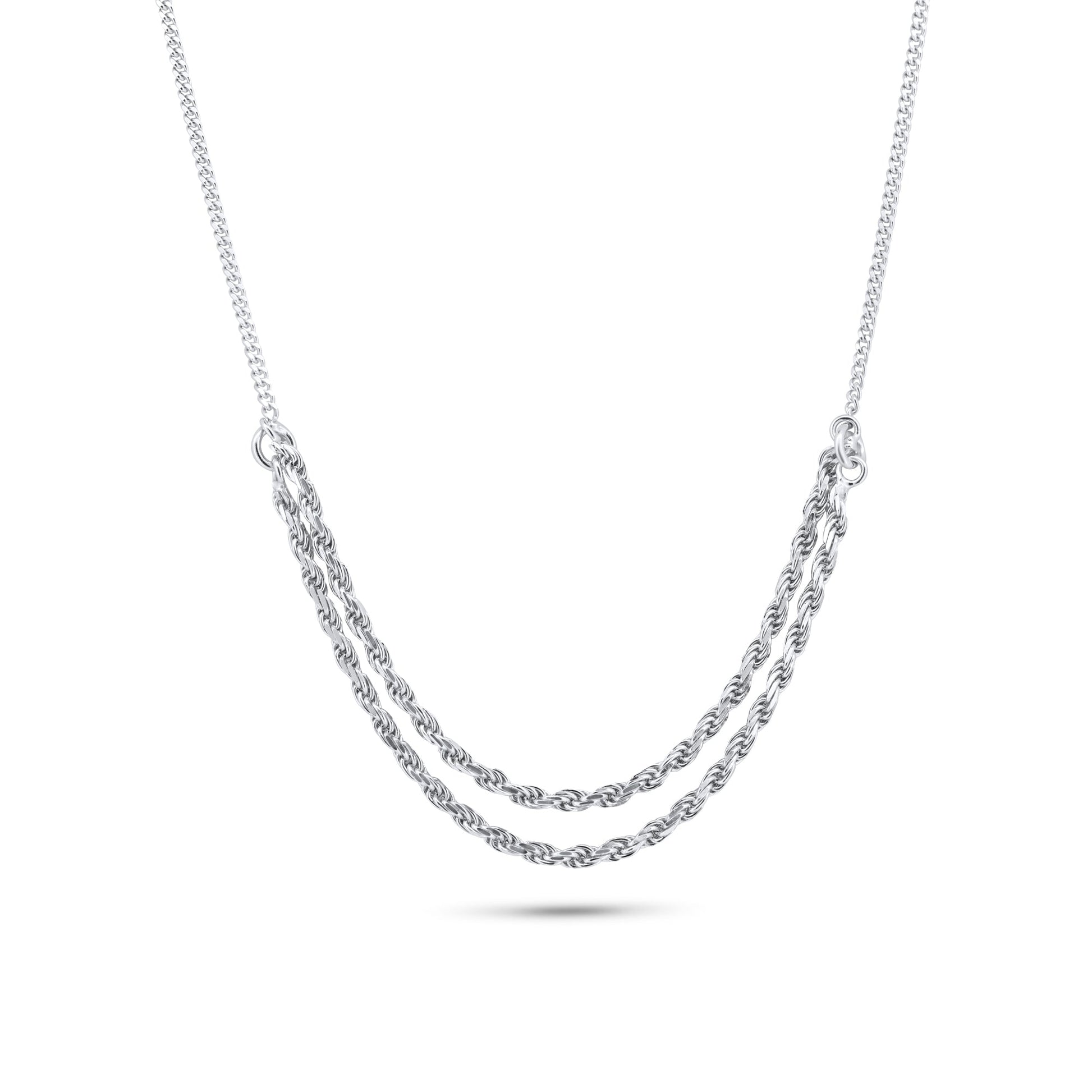 Rhodium Plated 925 Sterling Silver Curb Strand 1.7mm Rope Adjustable Necklace - ITN00171-RH