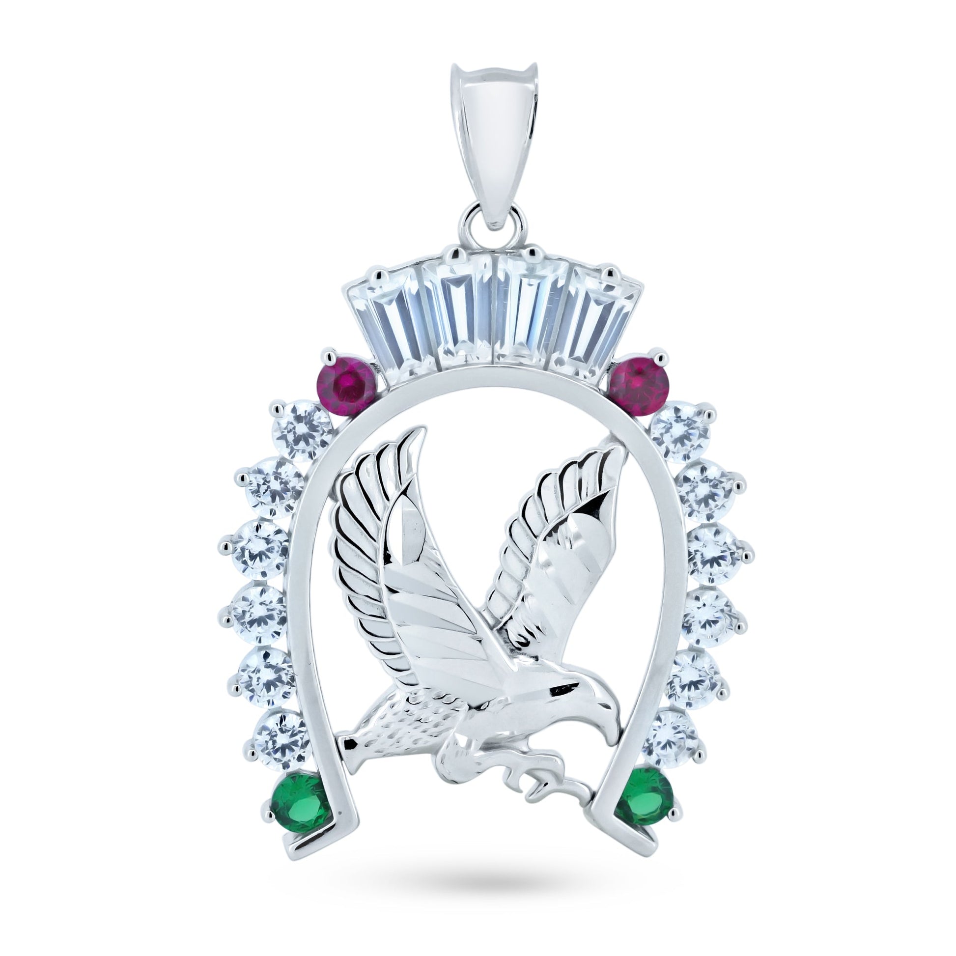 Rhodium Plated 925 Sterling Silver CZ Horse Shoe Eagle Center Pendant - GMP00134