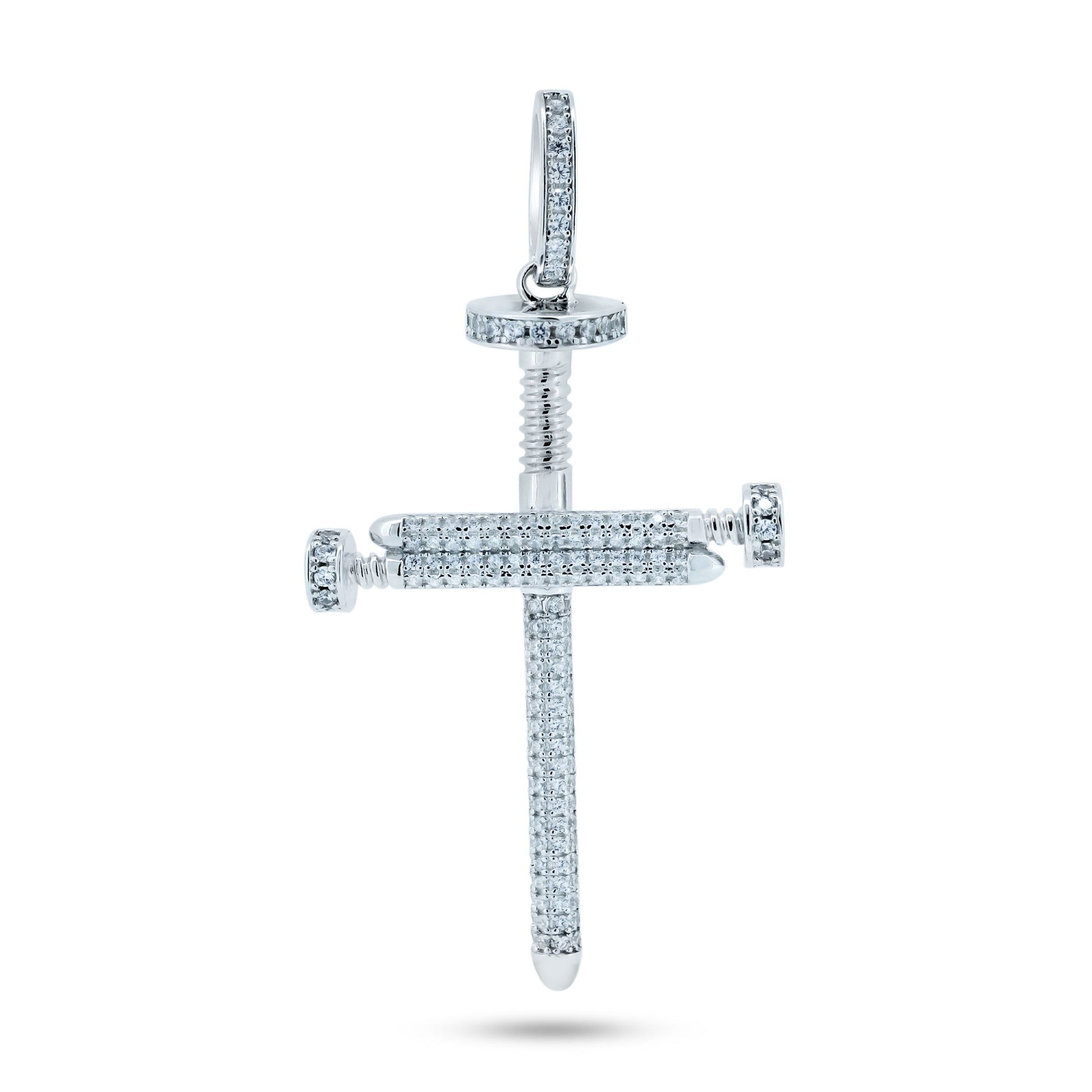 Rhodium Plated 925 Sterling Silver CZ Large Nail Cross Pendant - GMP00113