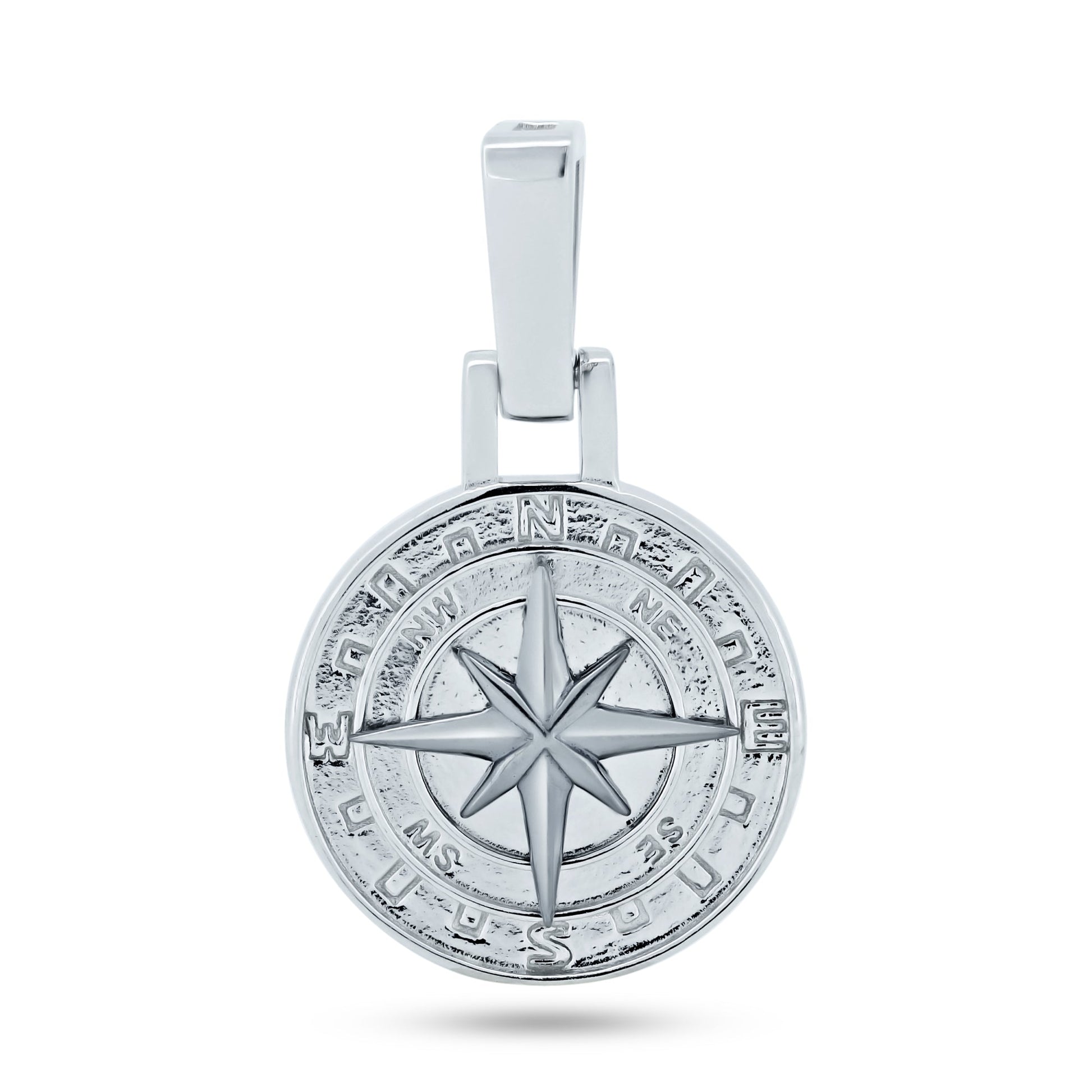 Rhodium Plated 925 Sterling Silver CZ Small Northern Star Medallion Pendant - GMP00105