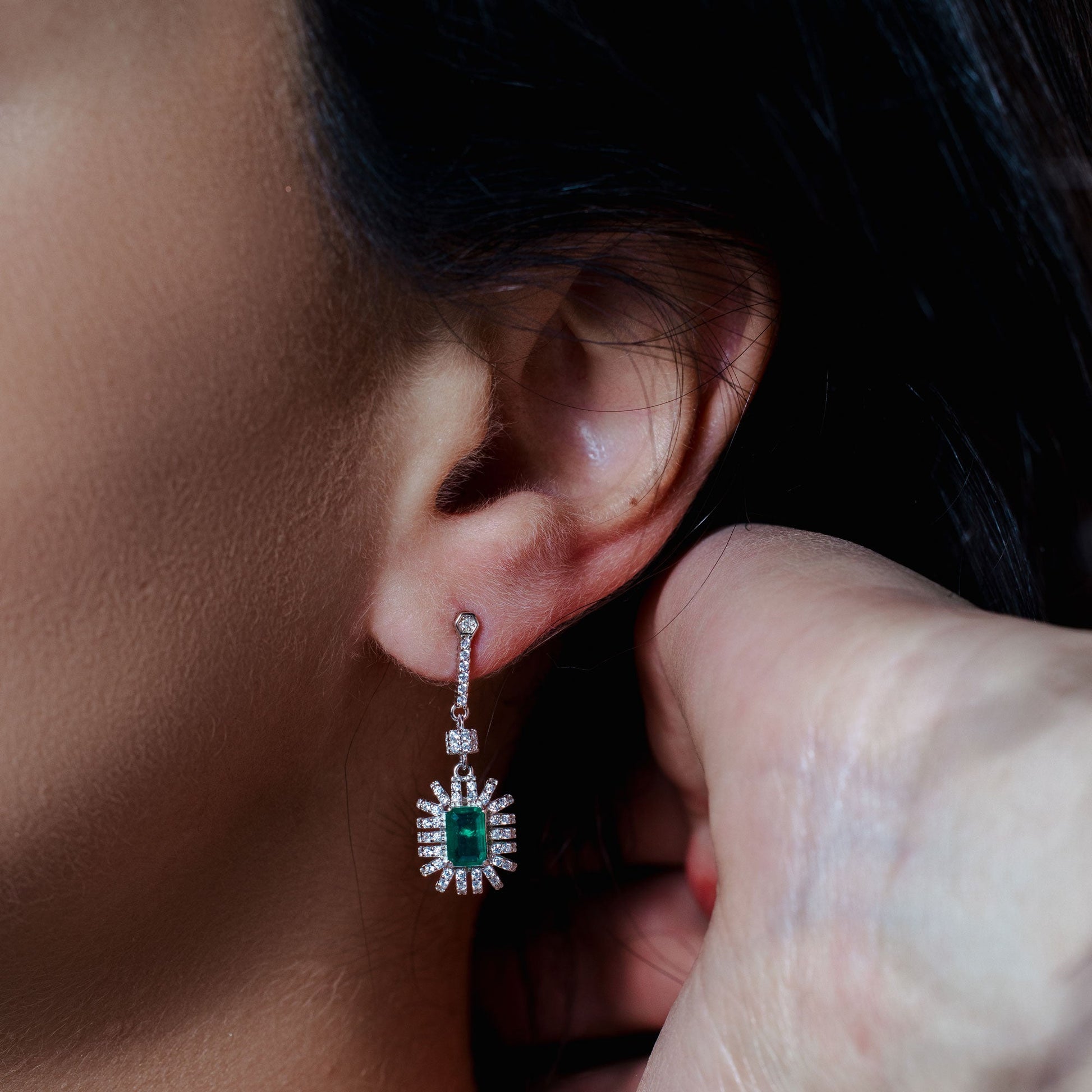 Indulge in the luxurious charm of these Silver 925 earrings. The Rhodium plating adds a touch of elegance while the dangling green CZ stones bring a pop of color. Perfect for any occasion, these stud earrings will add an exclusive and sophisticated touch to any outfit.