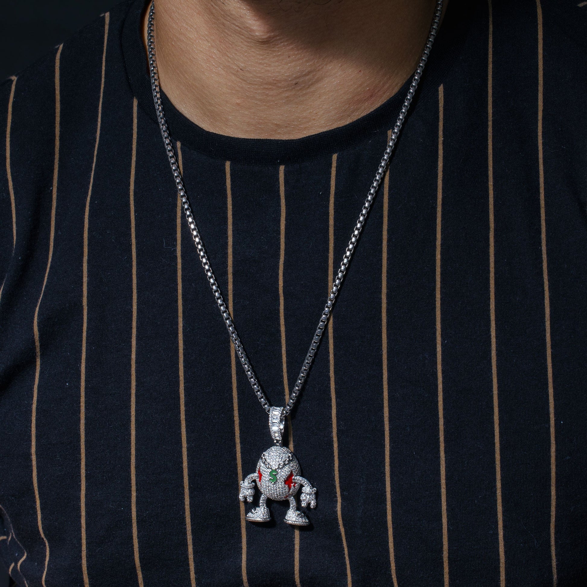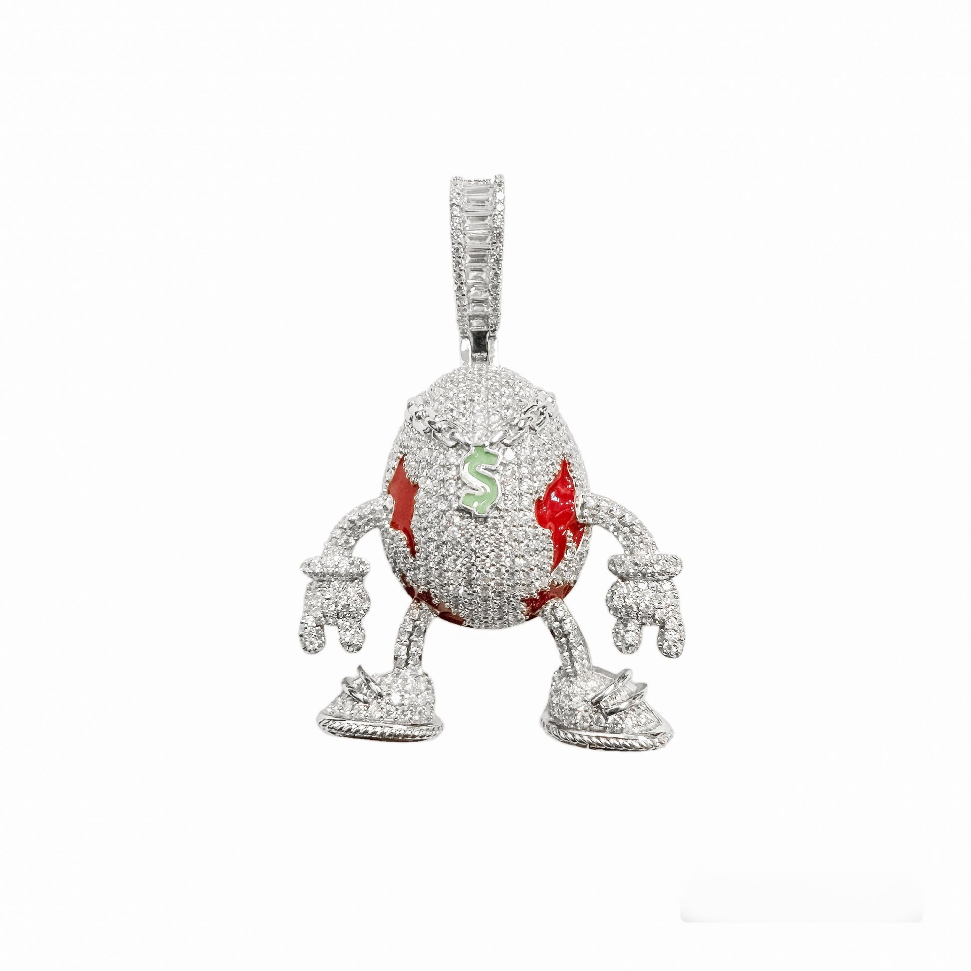 Rhodium Plated 925 Sterling Silver Egg Shaped Hip Hop Clear CZ Red and Green Enamel Pendant - SLP00376