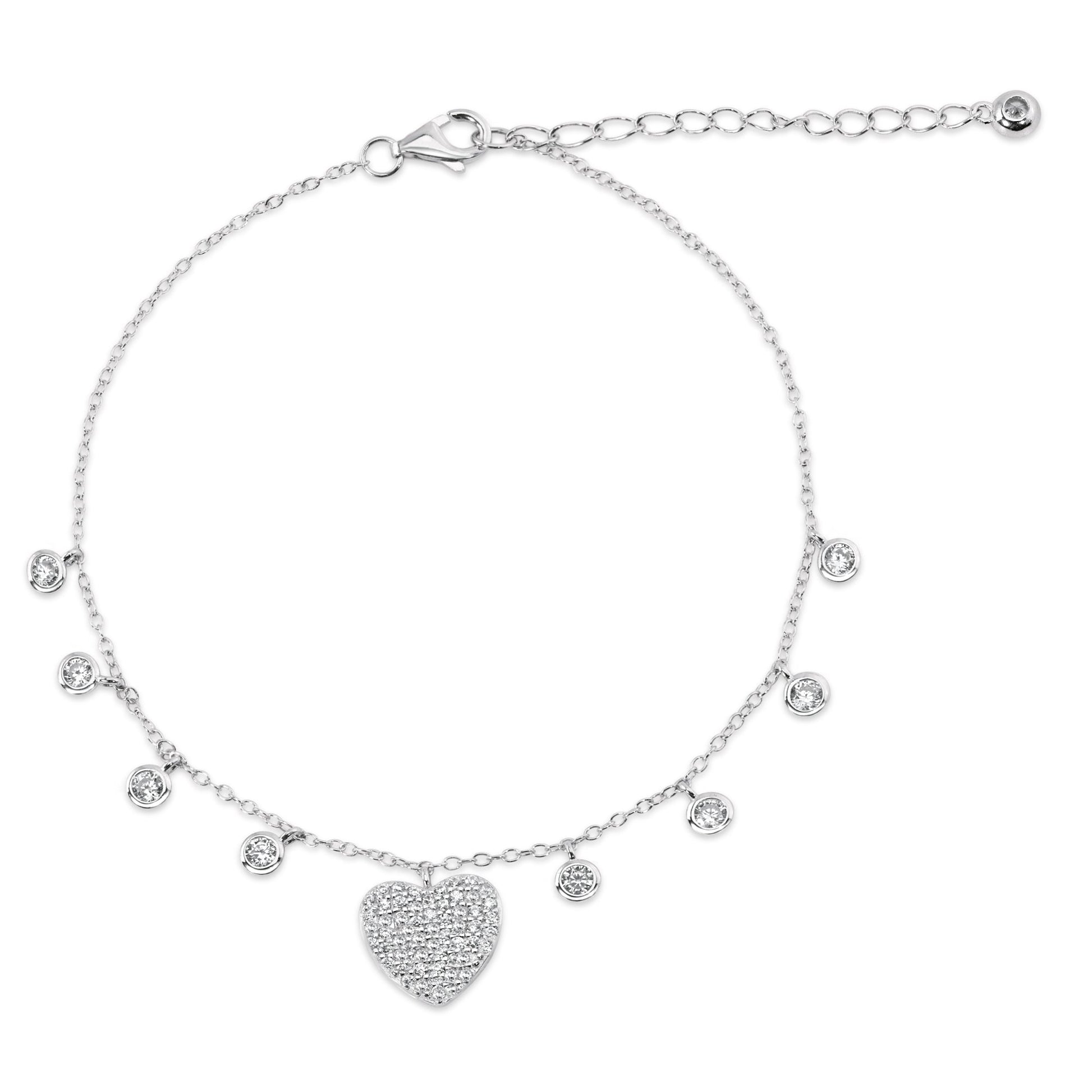 Rhodium Plated 925 Sterling Silver Heart and Round Dangling Charm Bracelet - STB00625