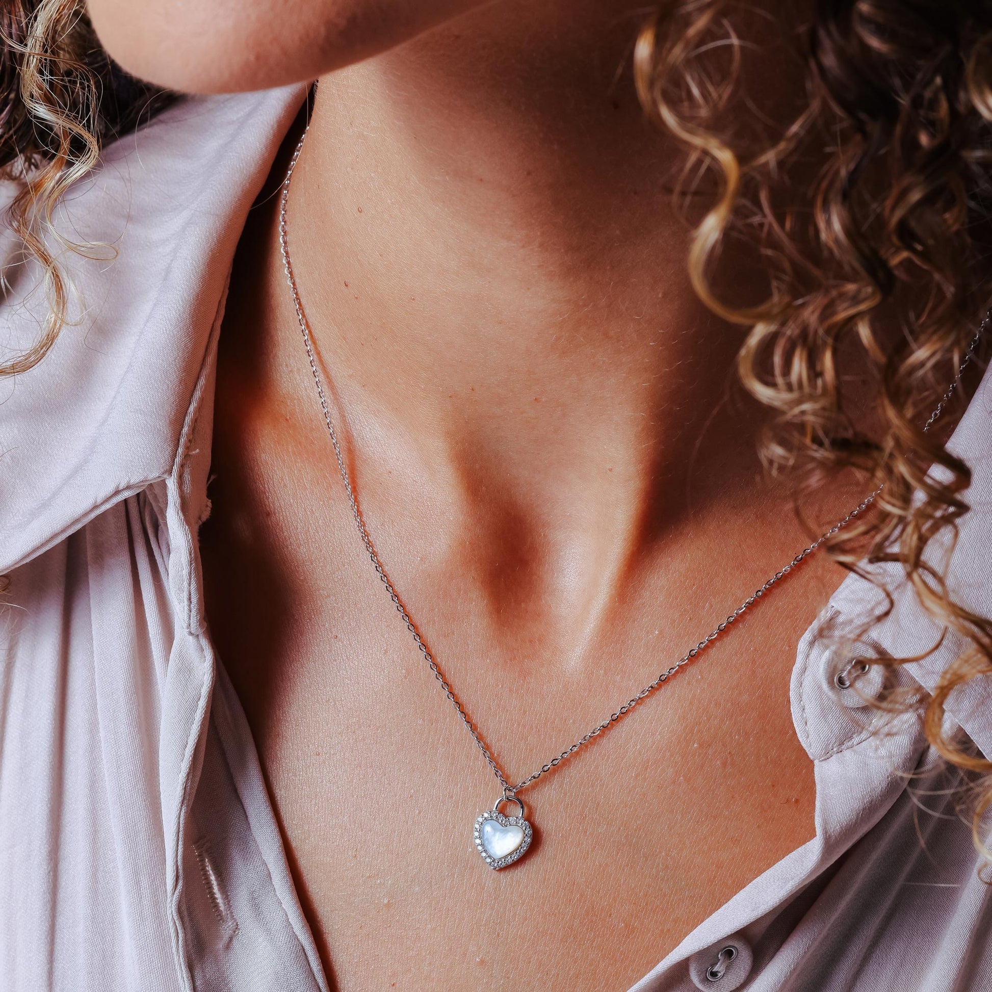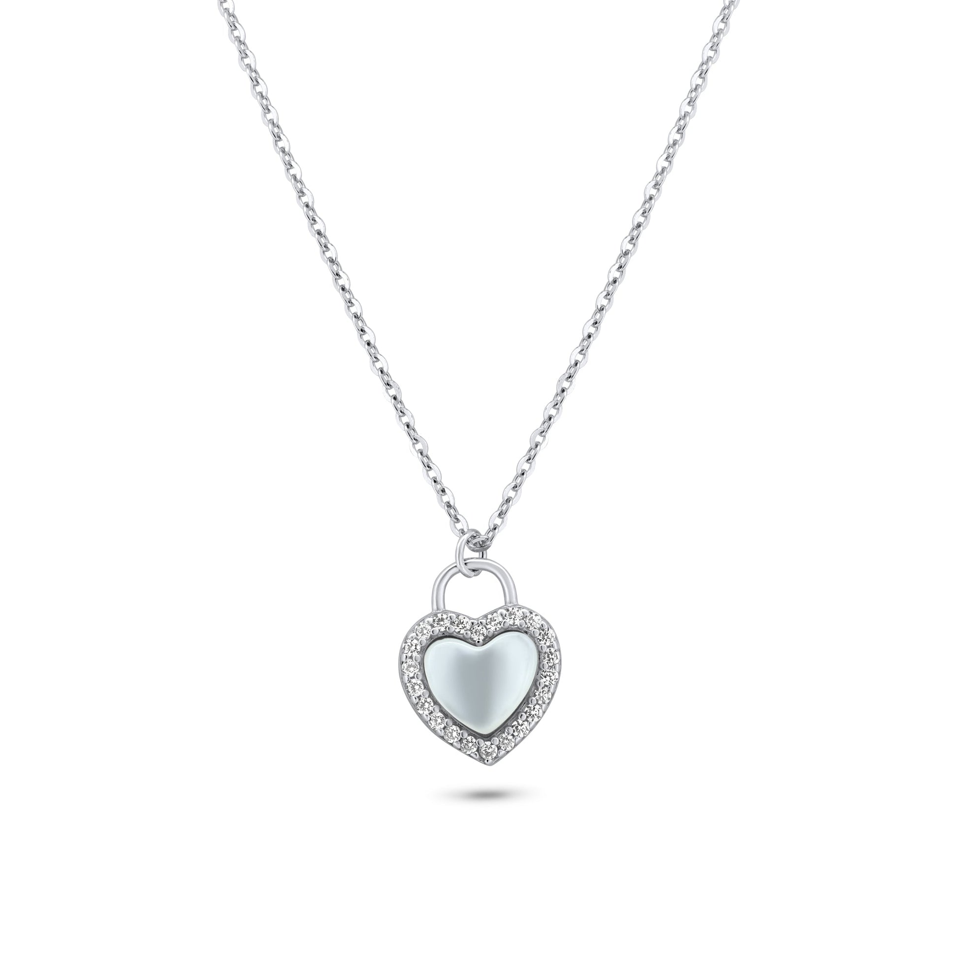 Rhodium Plated 925 Sterling Silver Heart CZ Mother of Pearl Necklace - GMN00203