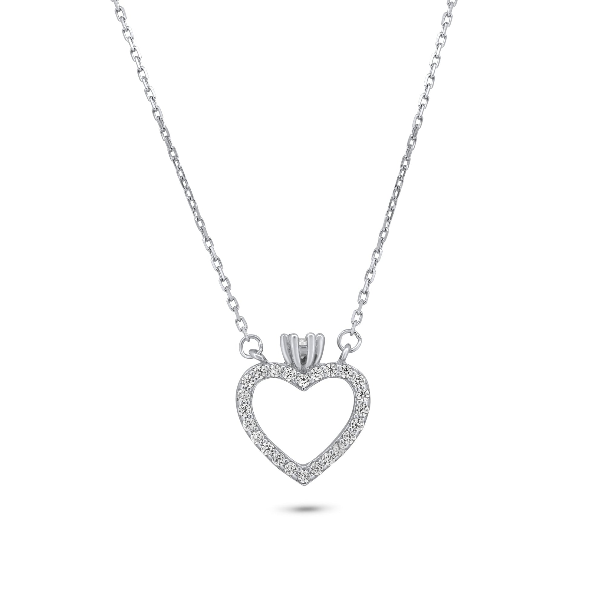 Rhodium Plated 925 Sterling Silver Heart CZ Necklace - GMN00202