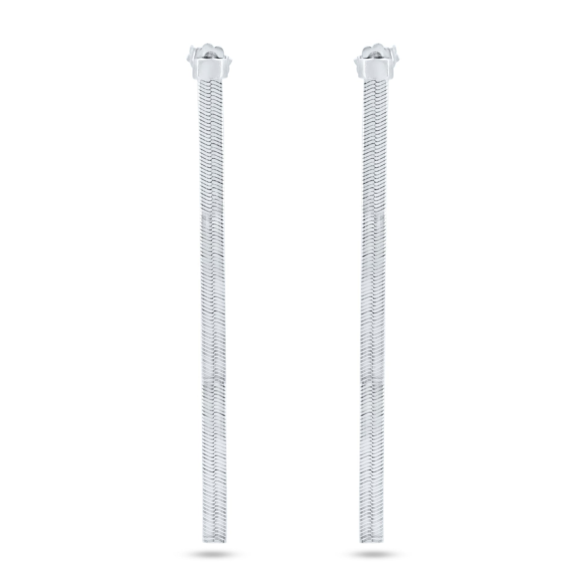 Rhodium Plated 925 Sterling Silver Herringbone Dangling Stud Earrings - ECE00065RH