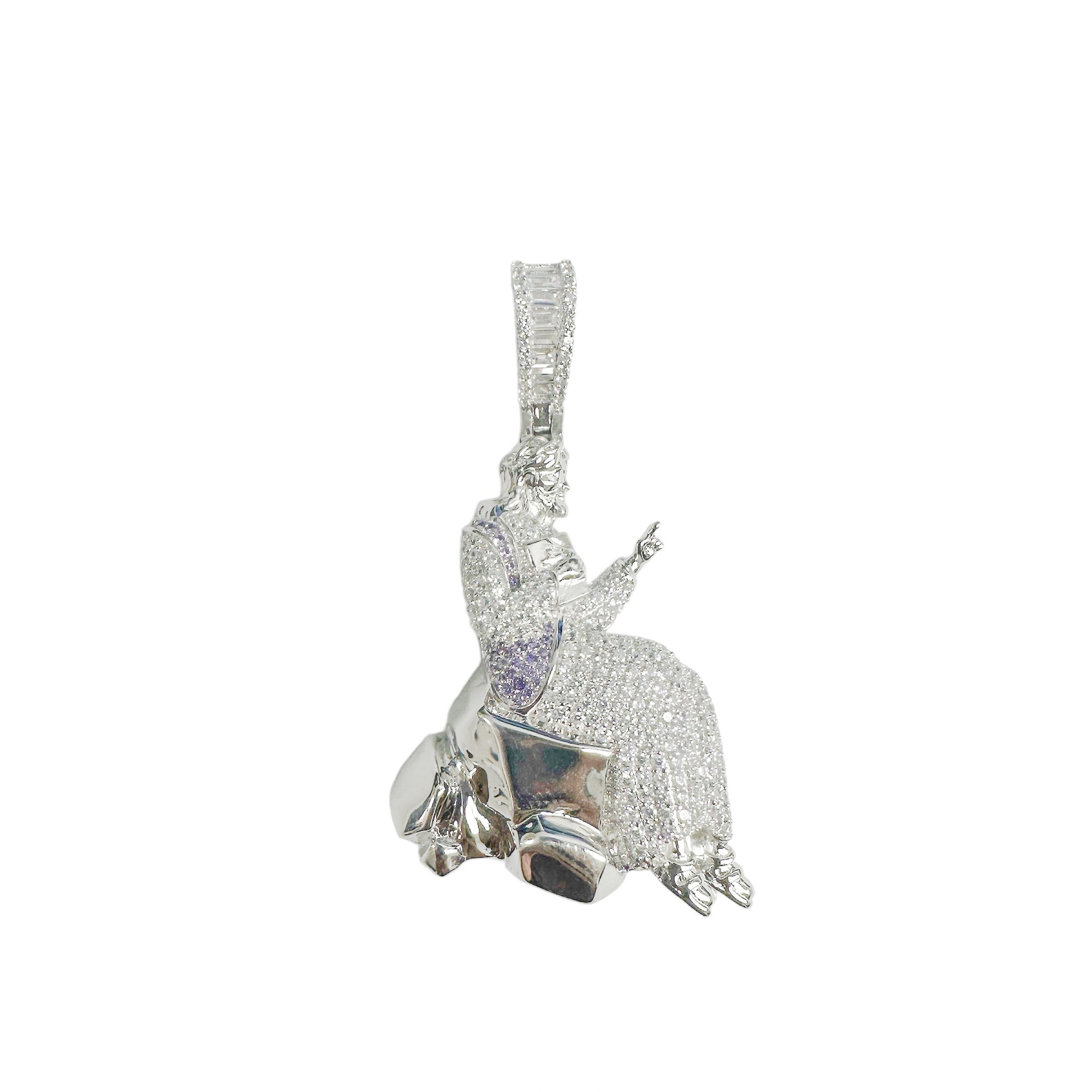 Rhodium Plated 925 Sterling Silver Jesus Sitting on a Rock Clear CZ Pendant - SLP00381