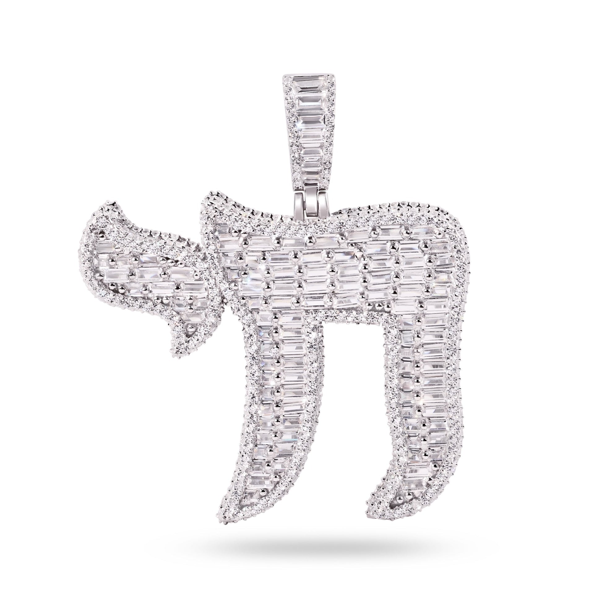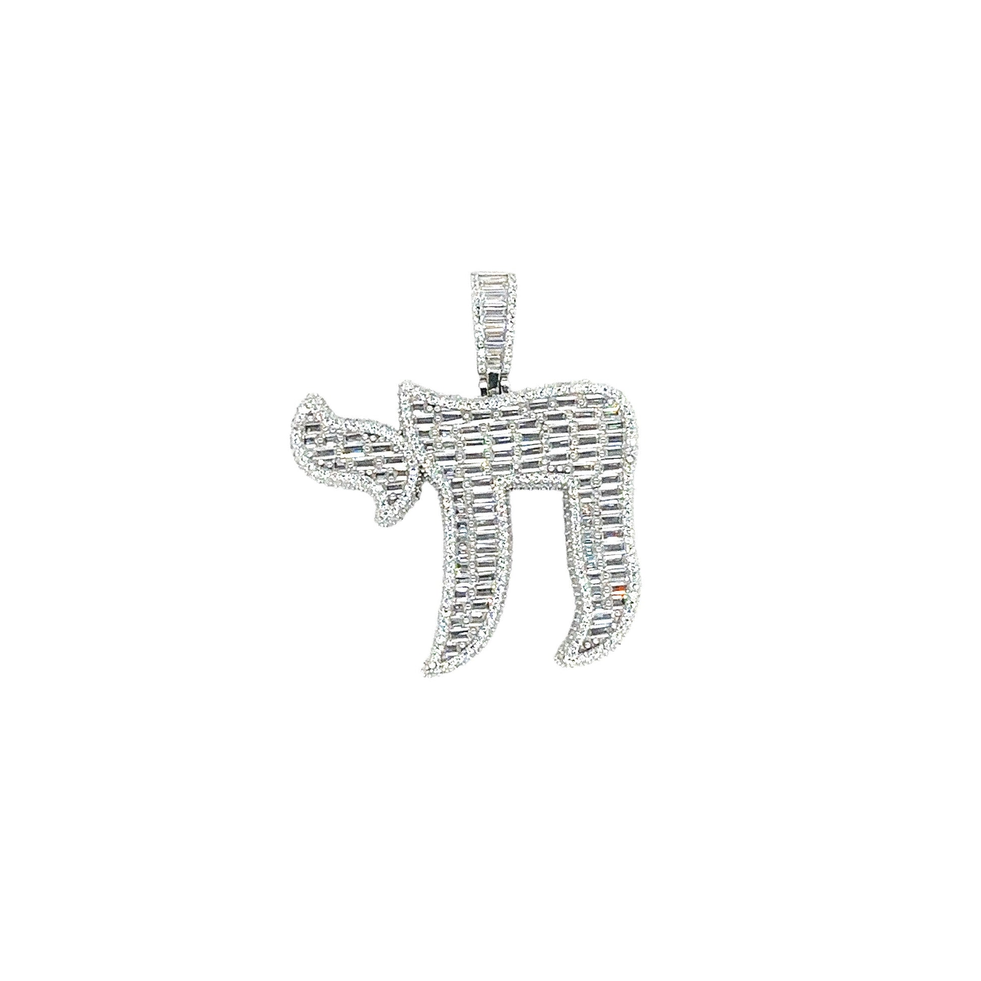 Rhodium Plated 925 Sterling Silver Jewish Chain Baguette Clear CZ Pendant - SLP00425