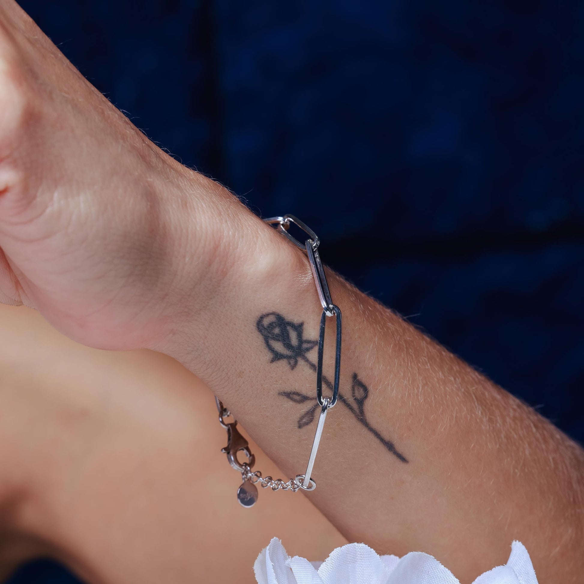 The Silver 925 Rhodium Plated Long 5.5mm Paperclip Adjustable Bracelet is a sleek and contemporary piece of jewelry that exudes style and versatility. Crafted from high-quality sterling silver, it features a rhodium plating, providing a lustrous and durable finish. The bracelet is designed with long paperclip links, measuring 5.5mm in width, which create a modern and minimalist look.