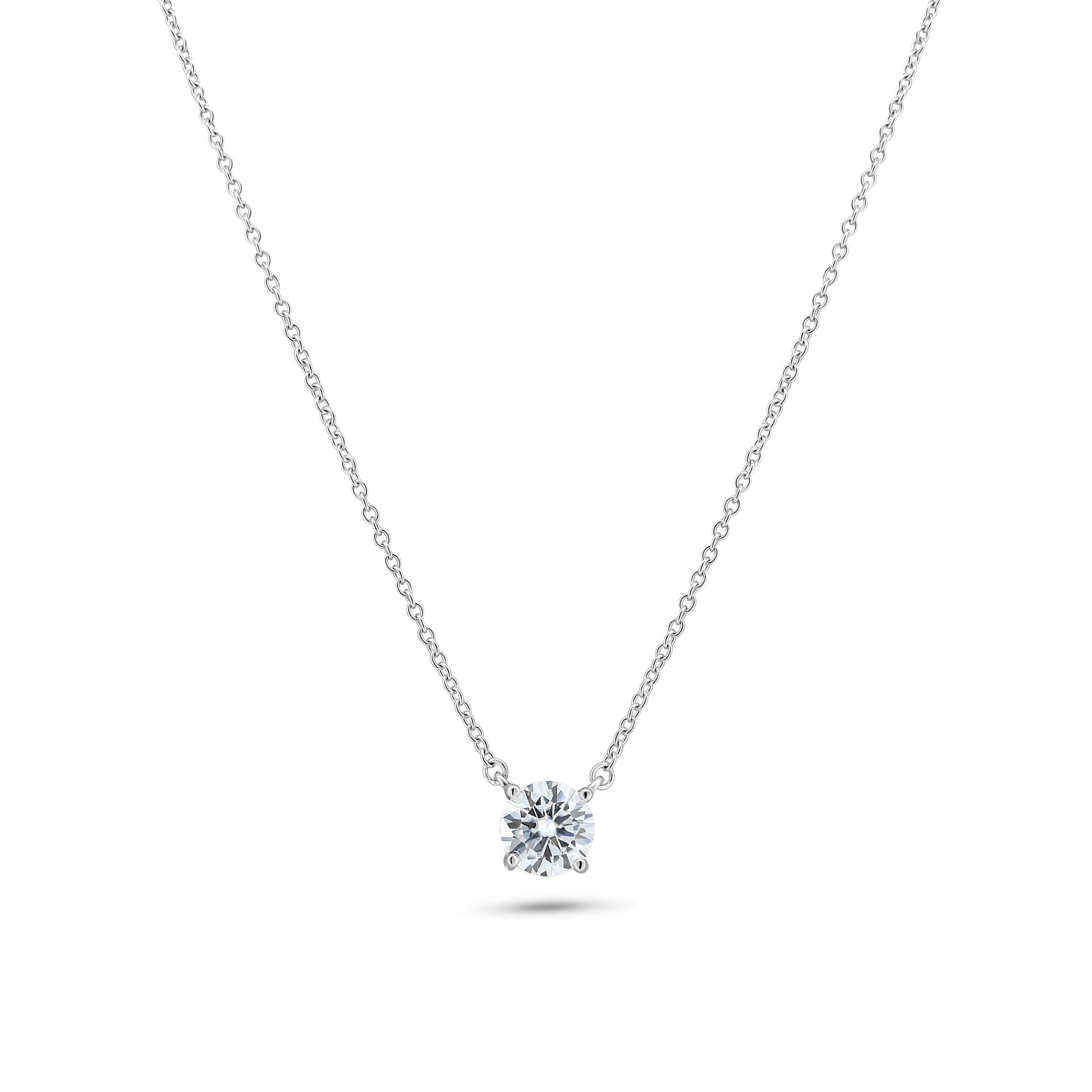 Rhodium Plated 925 Sterling Silver Moissanite Stone Halo Necklace - MGMN00011