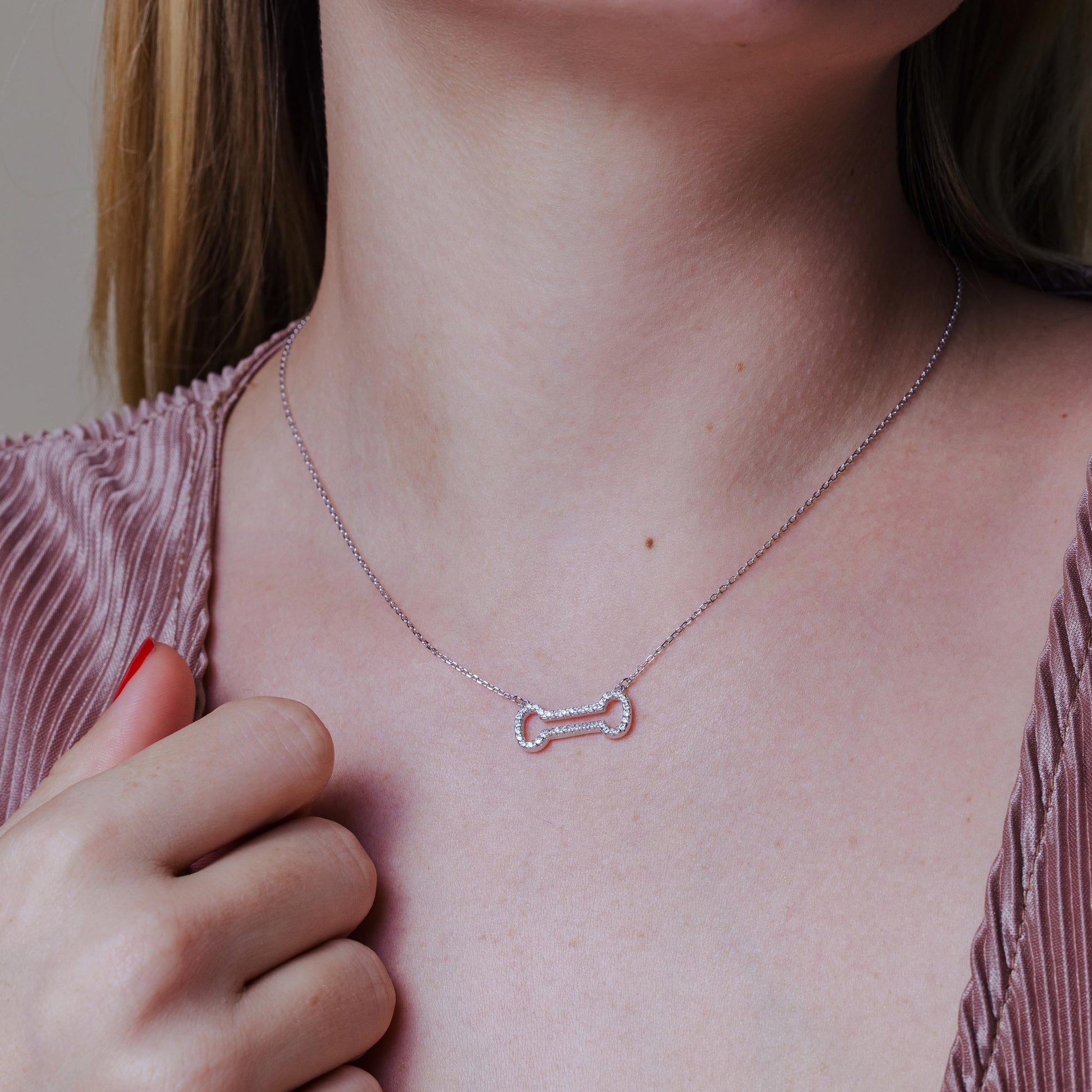 This Silver 925 Rhodium Plated Open Dog Bone Cubic Zirconia Necklace is a charming, eye-catching piece. With its rhodium plating, it's sure to keep its sparkle for years. Perfect for any occasion!