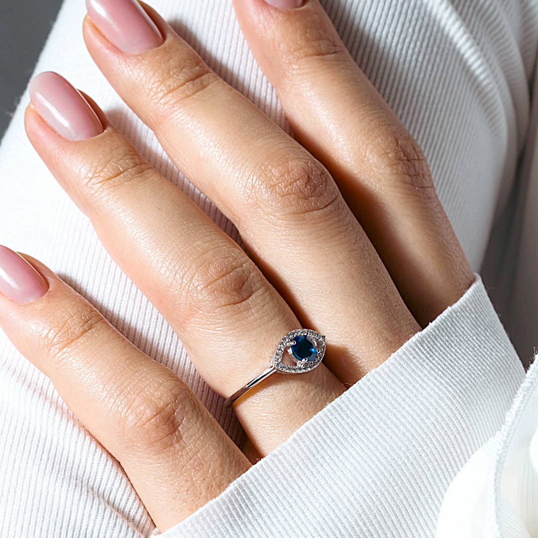 Rhodium Plated 925 Sterling Silver Open Evil Eye Ring with Blue Center Stones - BGR01360