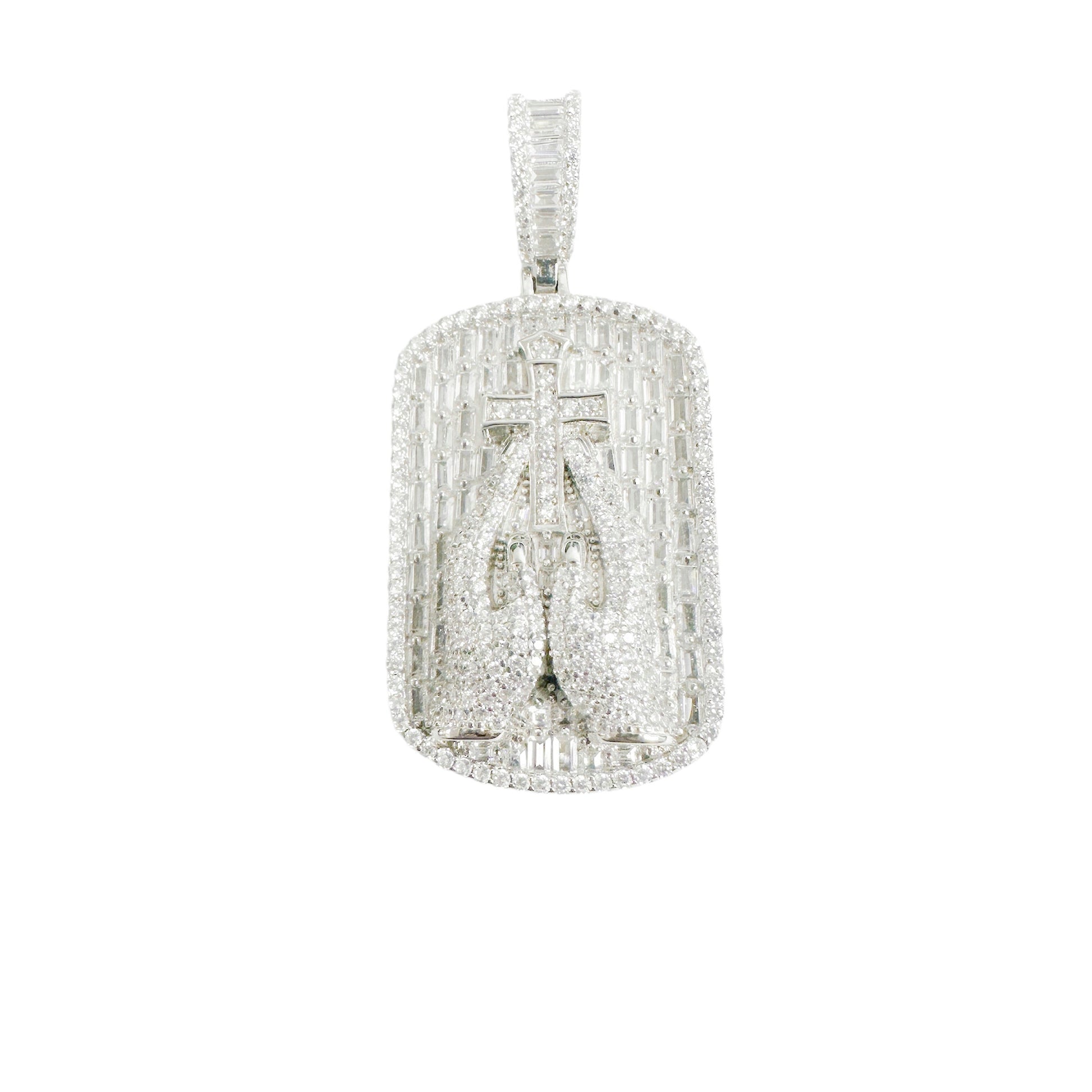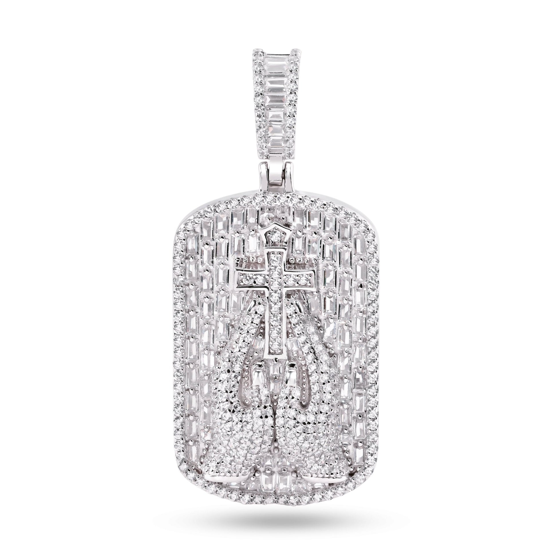 Elevate your style with our Silver 925 Rhodium Plated Praying Hands Cross Clear CZ Pendant. Crafted with premium materials, this pendant features a timeless praying hands design adorned with sparkling clear CZ stones. Exude elegance and sophistication with this luxurious accessory.