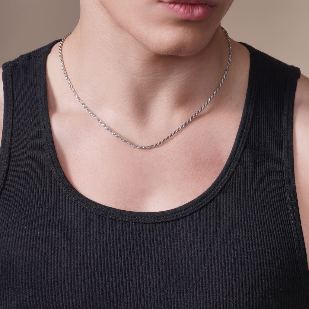 This Rhodium Plated 925 Sterling Silver Rope 050 Chain is delicate but durable, adding a touch of elegance to any outfit. The 2.5mm thickness allows for versatility in styling and the rhodium plating provides a high shine finish. Perfect for a casual or formal look!