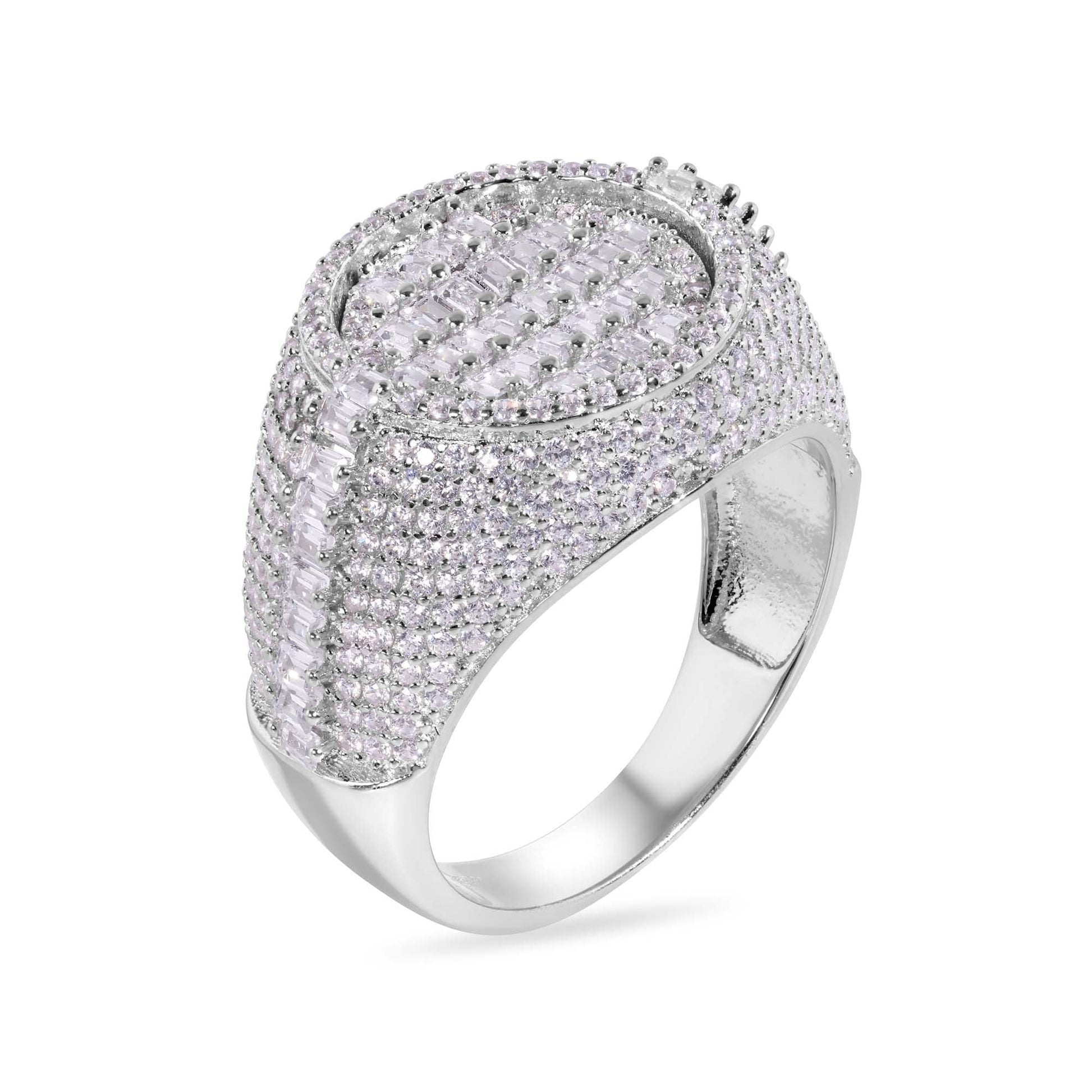 Indulge in luxury with our Silver 925 Rhodium Plated Statement Baguette Clear CZ Round Top 17.5mm Ring. Crafted with the finest materials, including silver and rhodium, this ring features a dazzling array of clear cubic zirconia stones in a bold and elegant design. Elevate your style with this exquisite piece.
