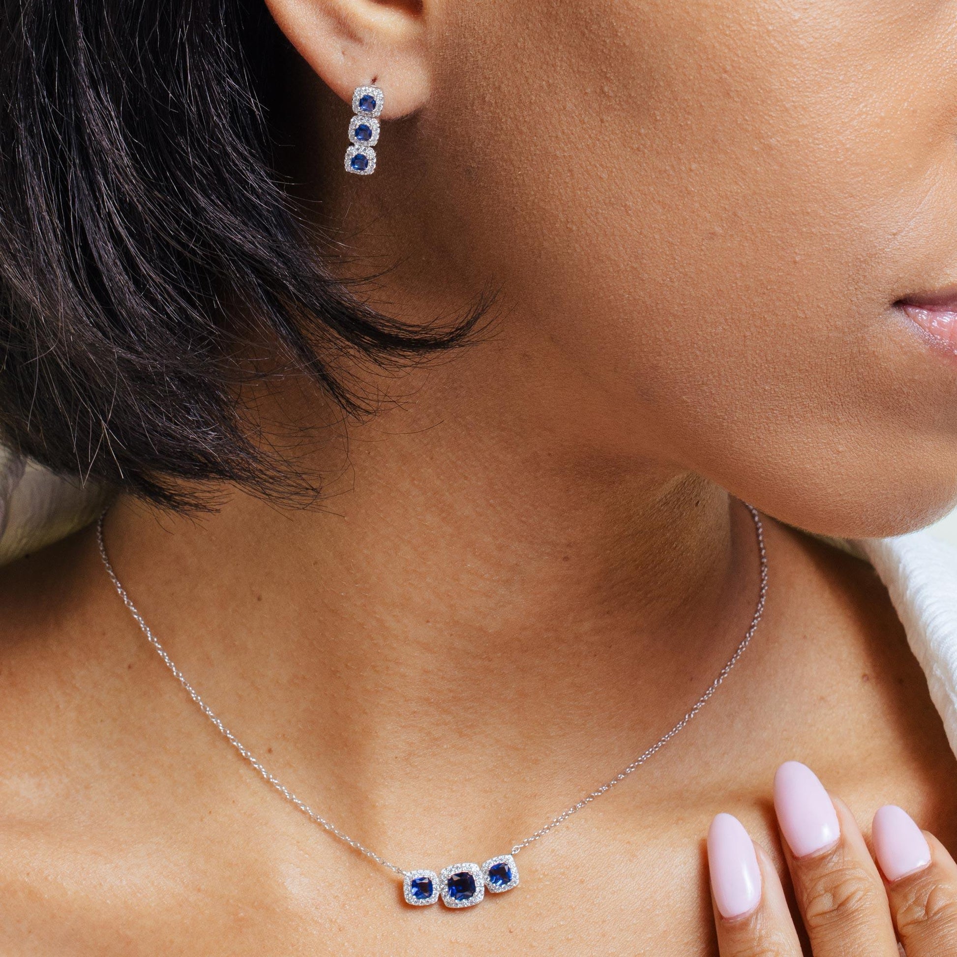 Wholesale Sterling Rhodium Plated 925 Sterling Silver Trio CZ Blue Sets