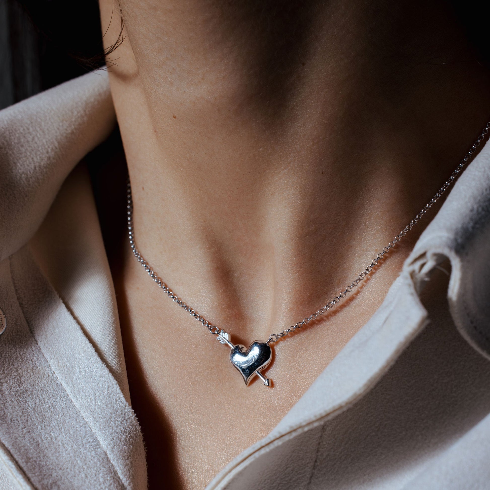 Rhodium Plated 925 Sterling Silver Valentine Heart Necklace Pendant - SOP00182