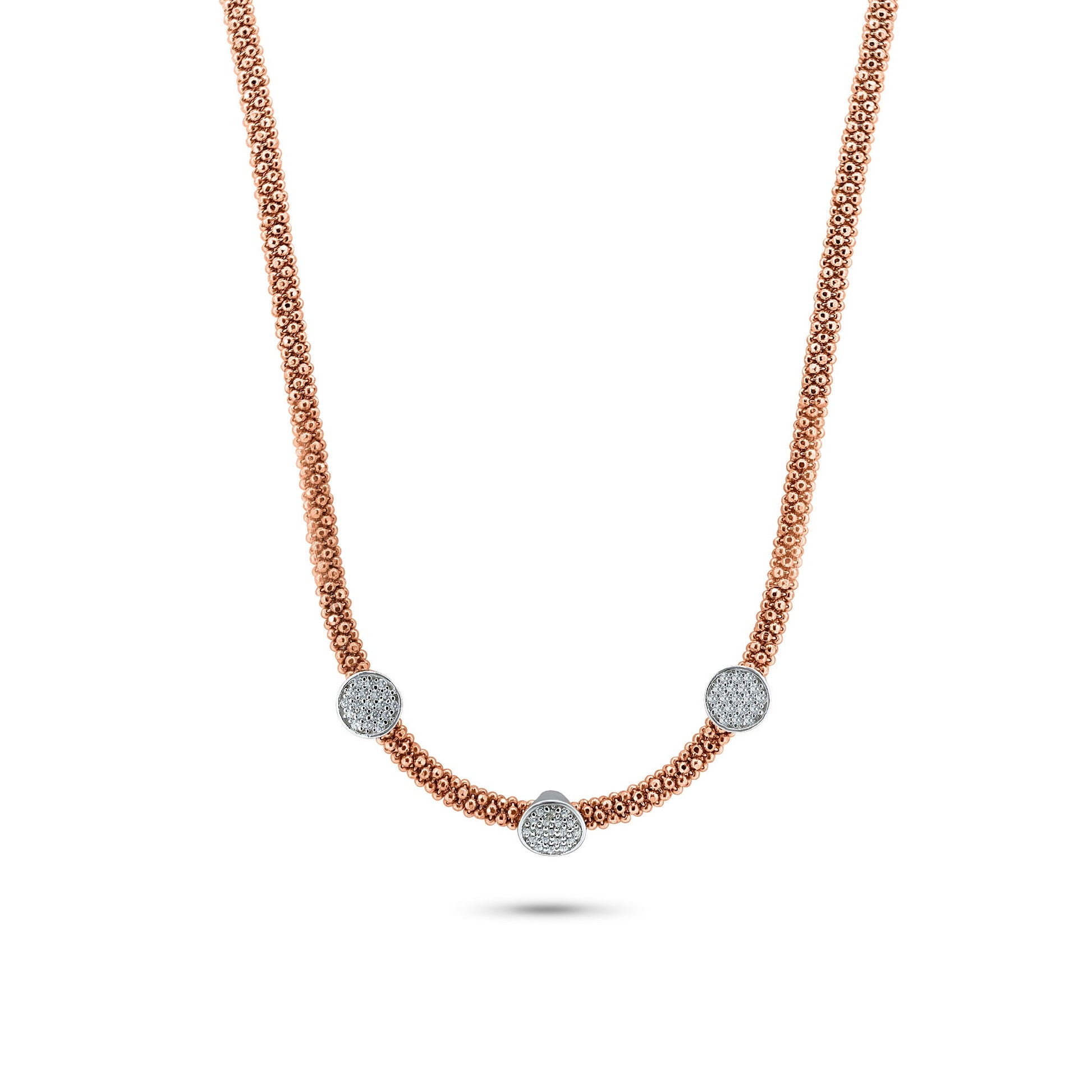 Rose Gold Plated 925 Sterling Silver Beaded 3 CZ Disc Necklace - ITN00085RGP