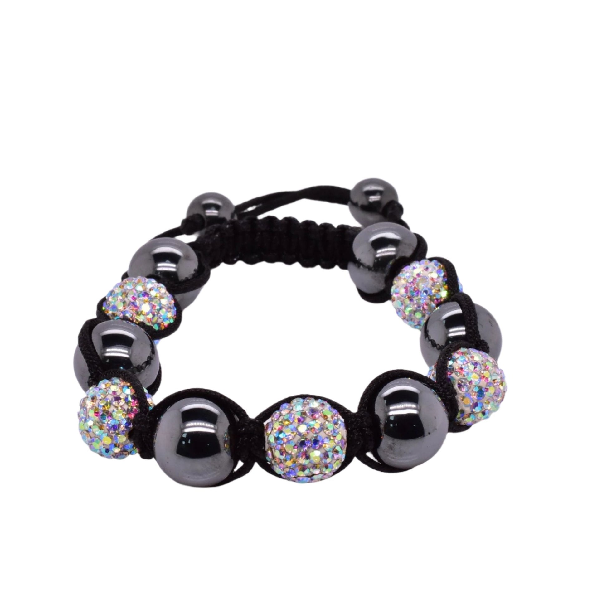 Stainless Steel Multicolor Crystal and Hematite Shamballa Corded Bracelet - SBB00040