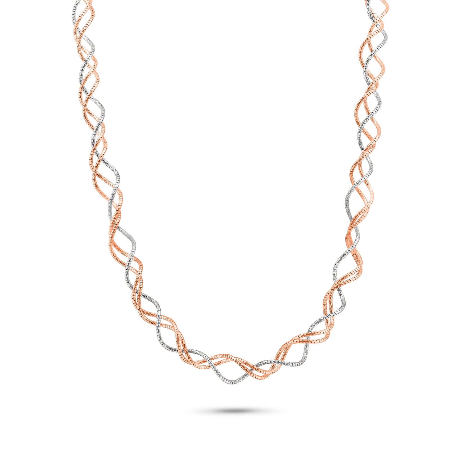 Our Sterling Silver Triple Twisted Italian Necklace is perfect for adding a unique accent to your look. Two-toned and plated in rose gold and rhodium, it's sure to turn heads no matter the occasion.