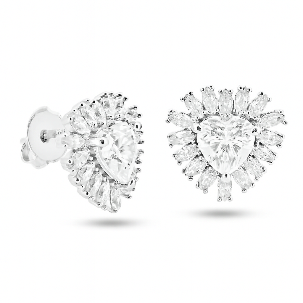 Sterling Rhodium Plated 925 Sterling Silver Moissanite Stone Heart Earring - MGME00003