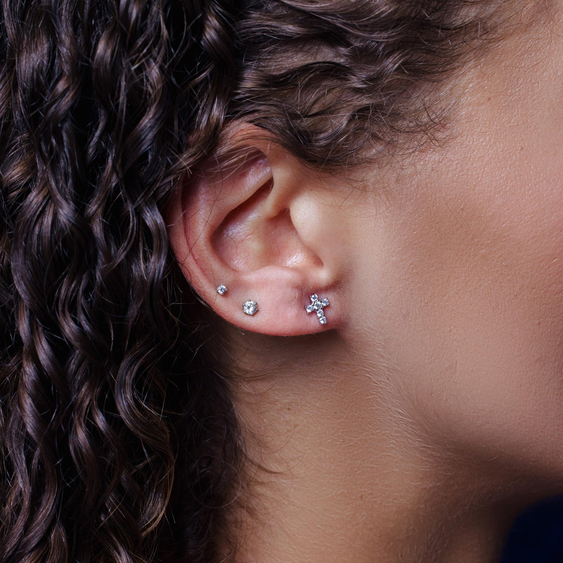 Sterling Silver Rhodium Plated Clear CZ Cross Earring - STE01365RH