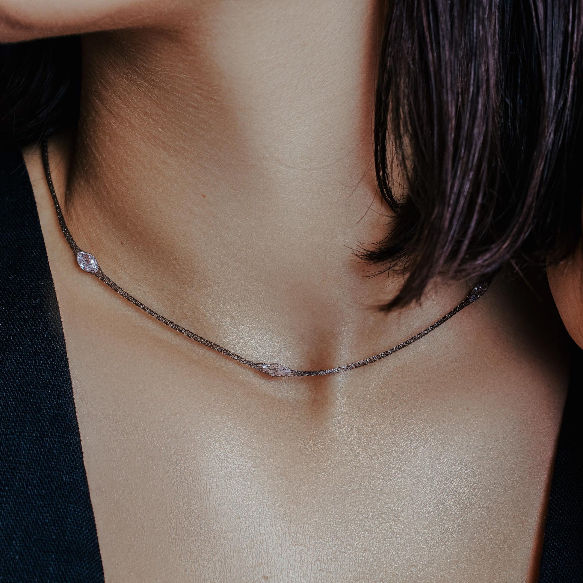 Wholesale Sterling Silver 925 Black Rhodium Plated Mesh Embedded CZ Thin Italian Necklace