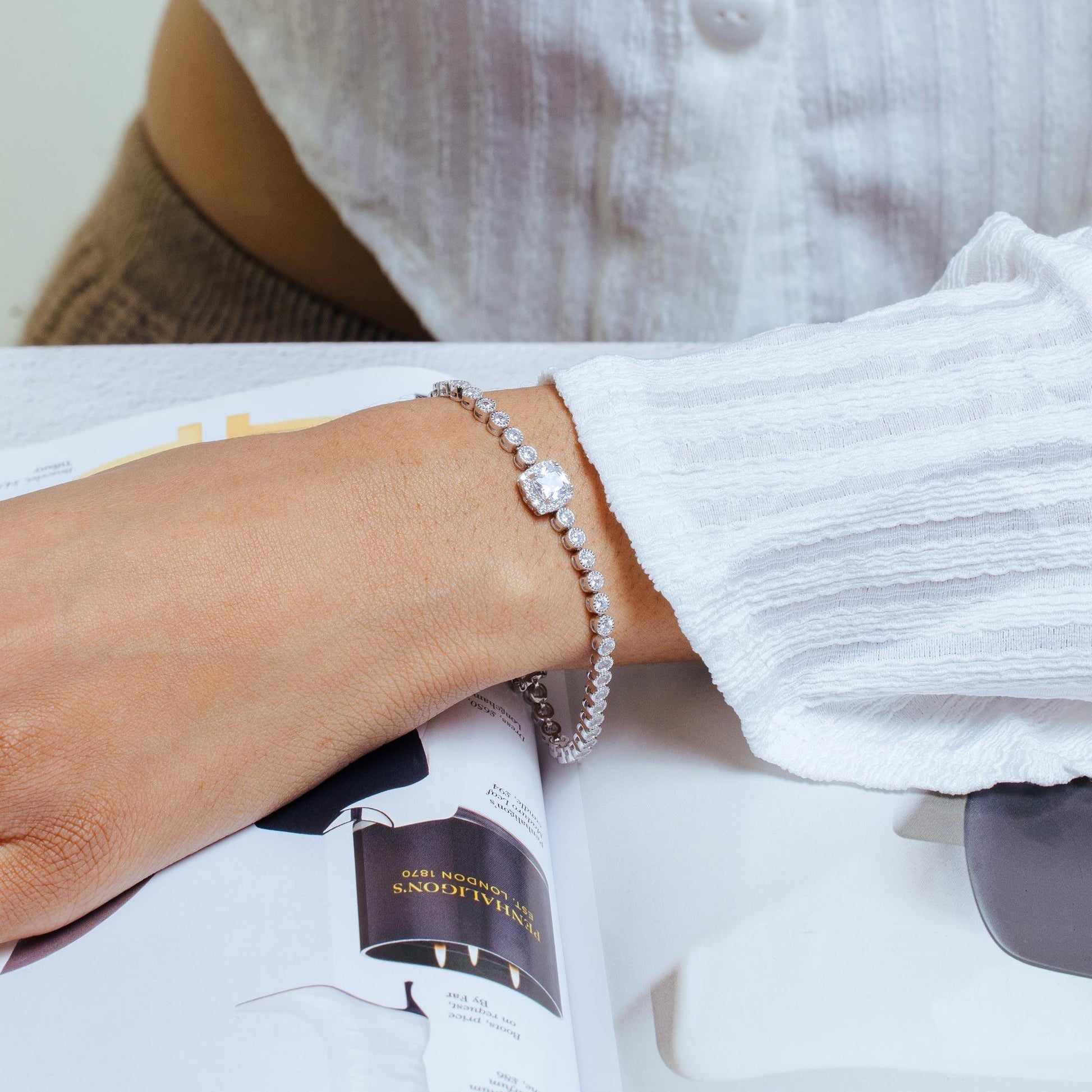 Wholesale Sterling Silver 925 Clear CZ Clear Halo Center Bubble Tennis Bracelet