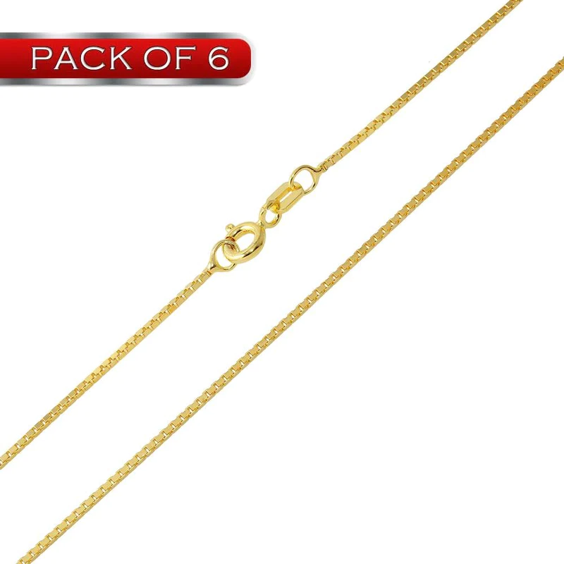 Wholesale Sterling Silver 925 Gold Plated Box DC Chain 1.0mm(Pack of 6)