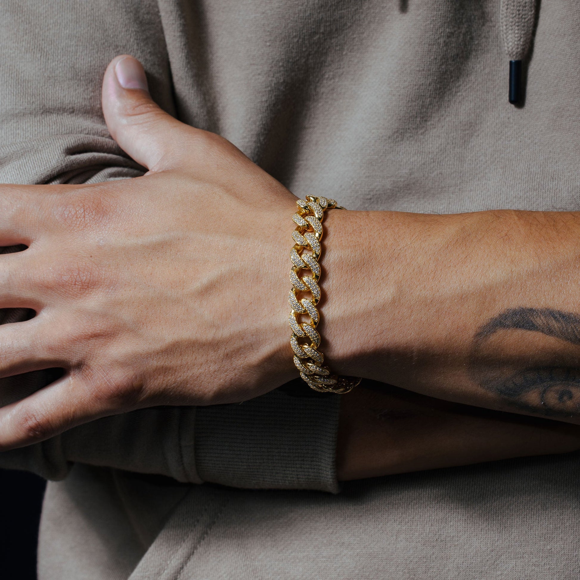 Elevate your style with our prestigious Gold Plated Cuban Link Bracelet. Made of 925 sterling silver, it features intricate CZ encrusted links for a luxurious touch. With its 11.5mm width, it exudes sophistication and exclusivity. Perfect for any occasion, this wholesale piece will elevate your fashion game.