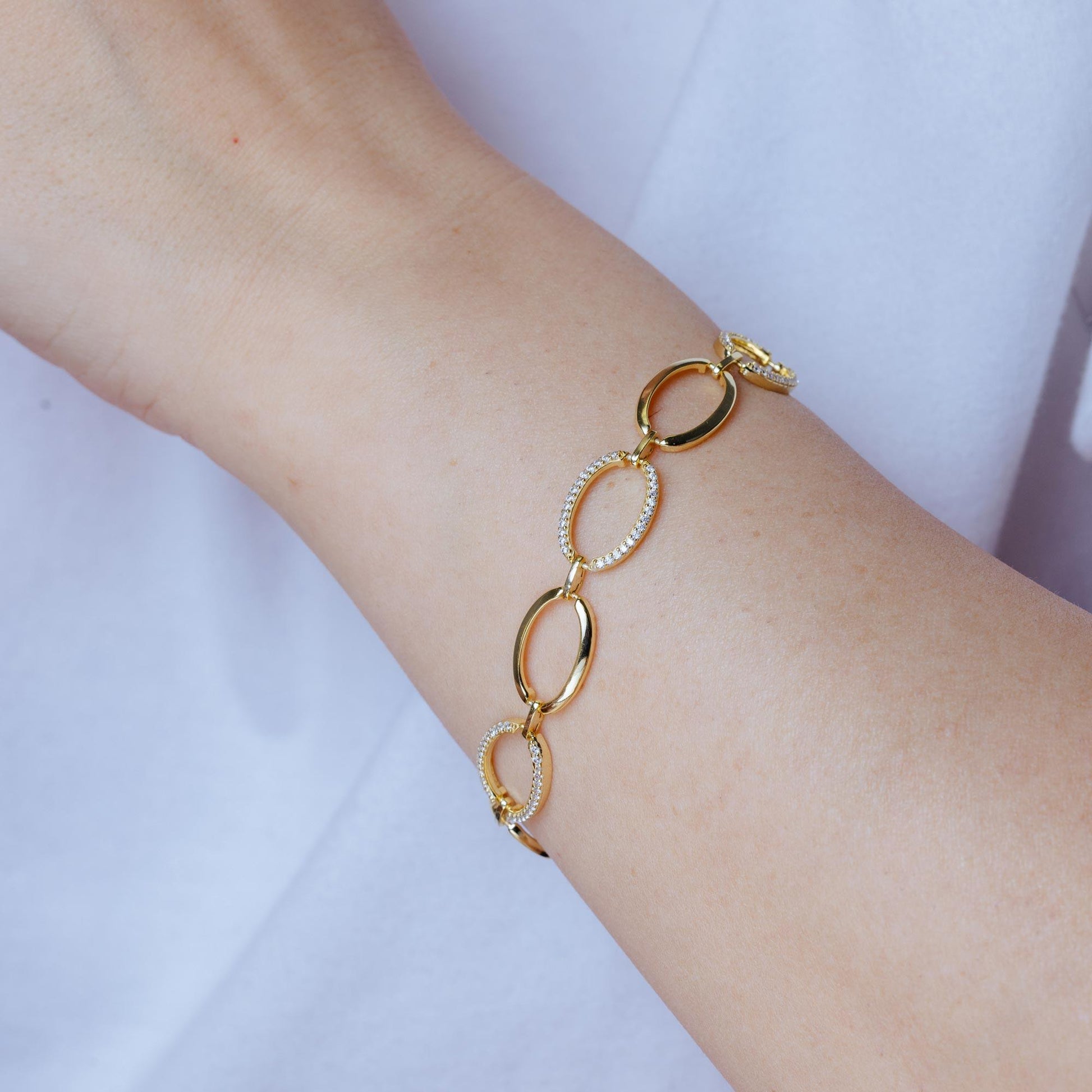 Wholesale Sterling Silver 925 Gold Plated Oval CZ Bracelet
