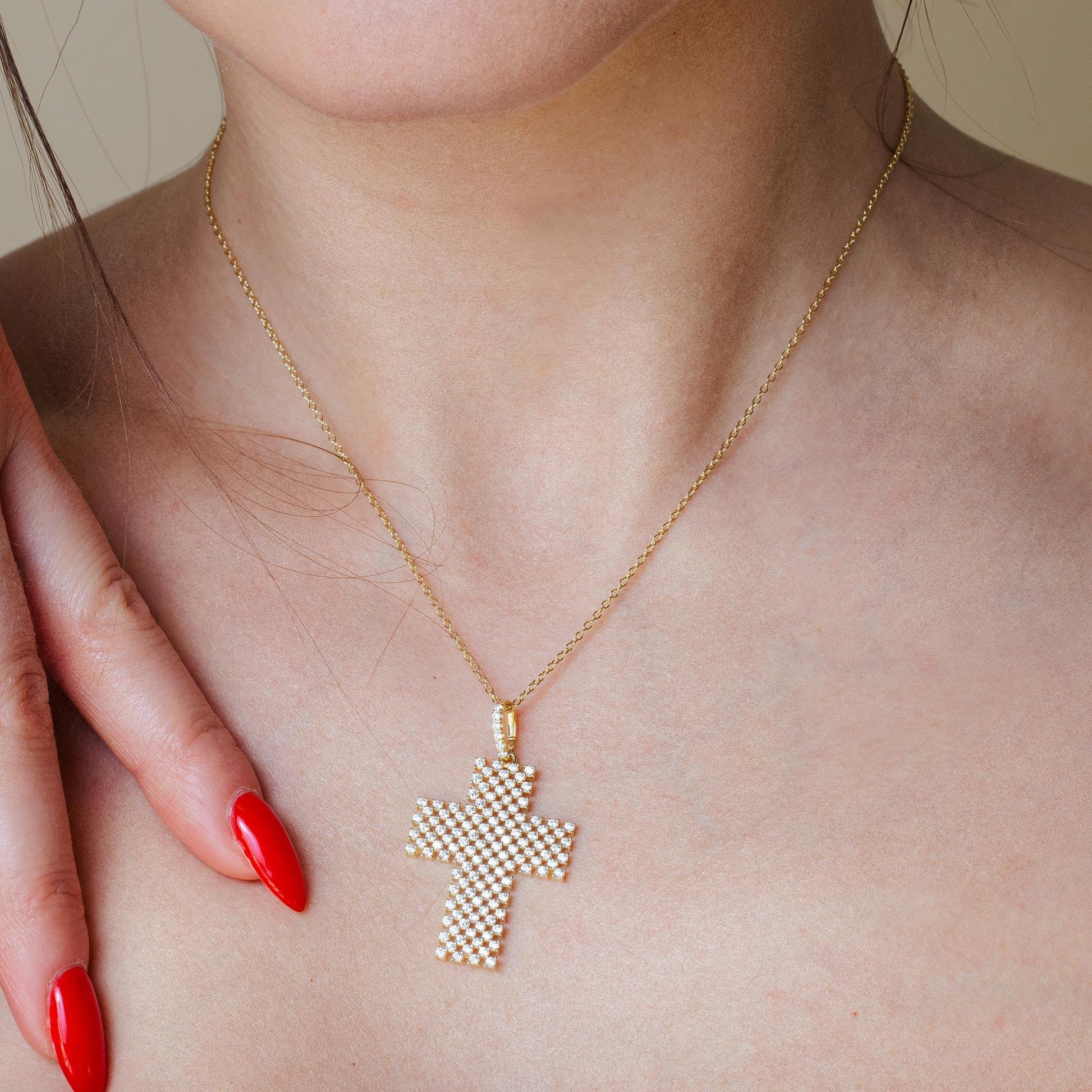 Wholesale Sterling Silver 925 Gold Plated Thick Open Checkered Cross CZ Pendant