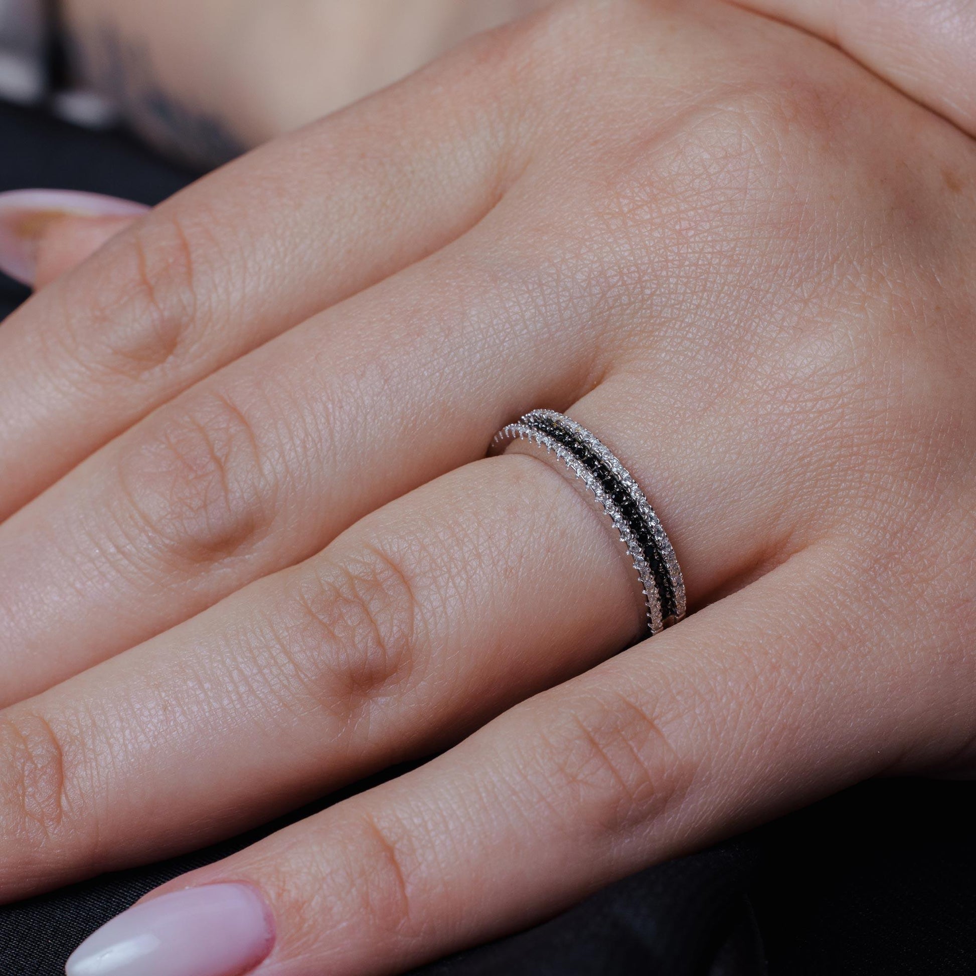 Sterling Silver Rhodium and Black Rhodium Plated Half Micro Pave Black and Clear CZ Ring