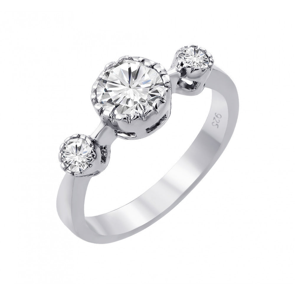 Silver 925 Rhodium Plated 3 Round Clear CZ Past Present Future Ring - BGR00866