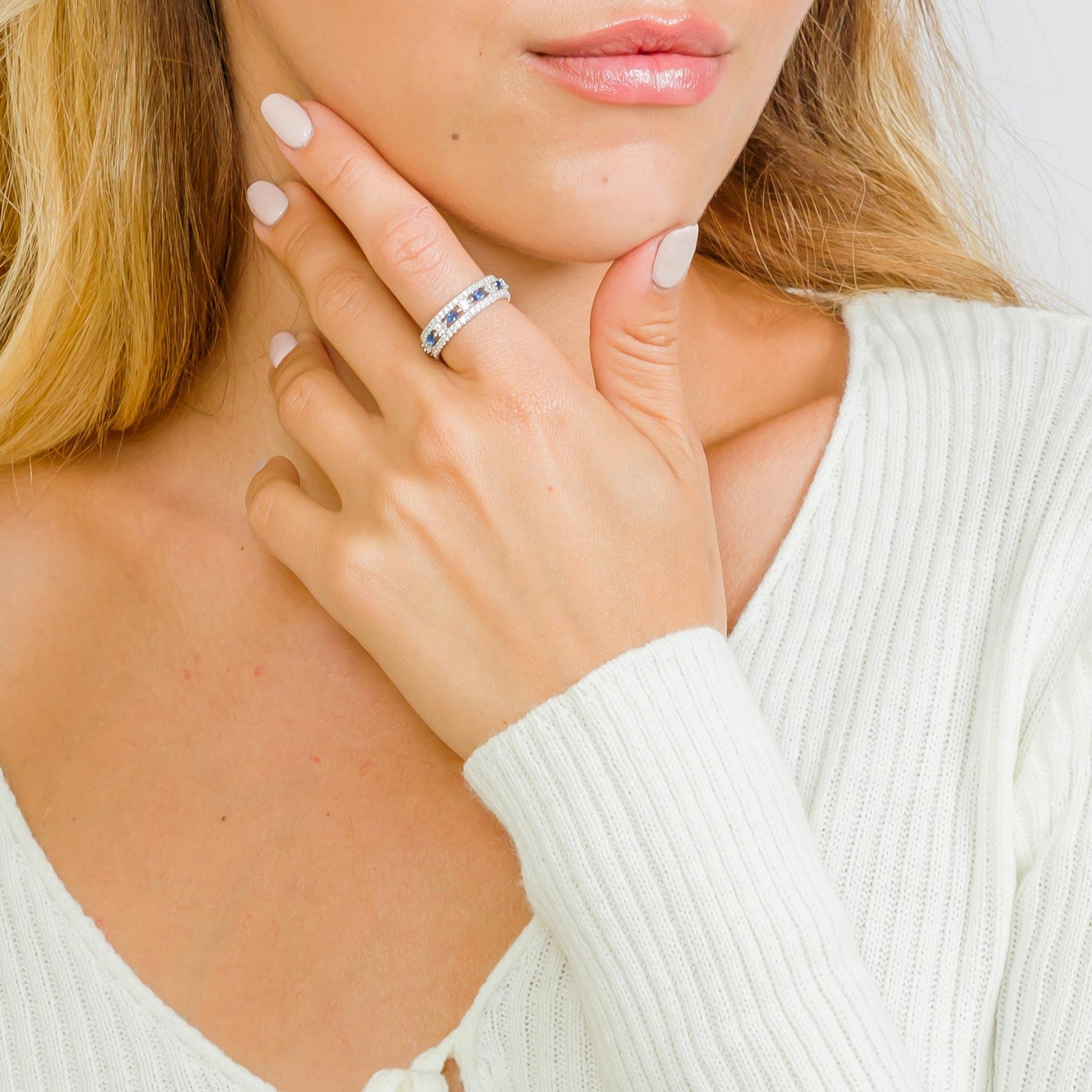 Silver 925 Rhodium Plated Band Encrusted with Clear and Blue CZ Stones - GMR00133S