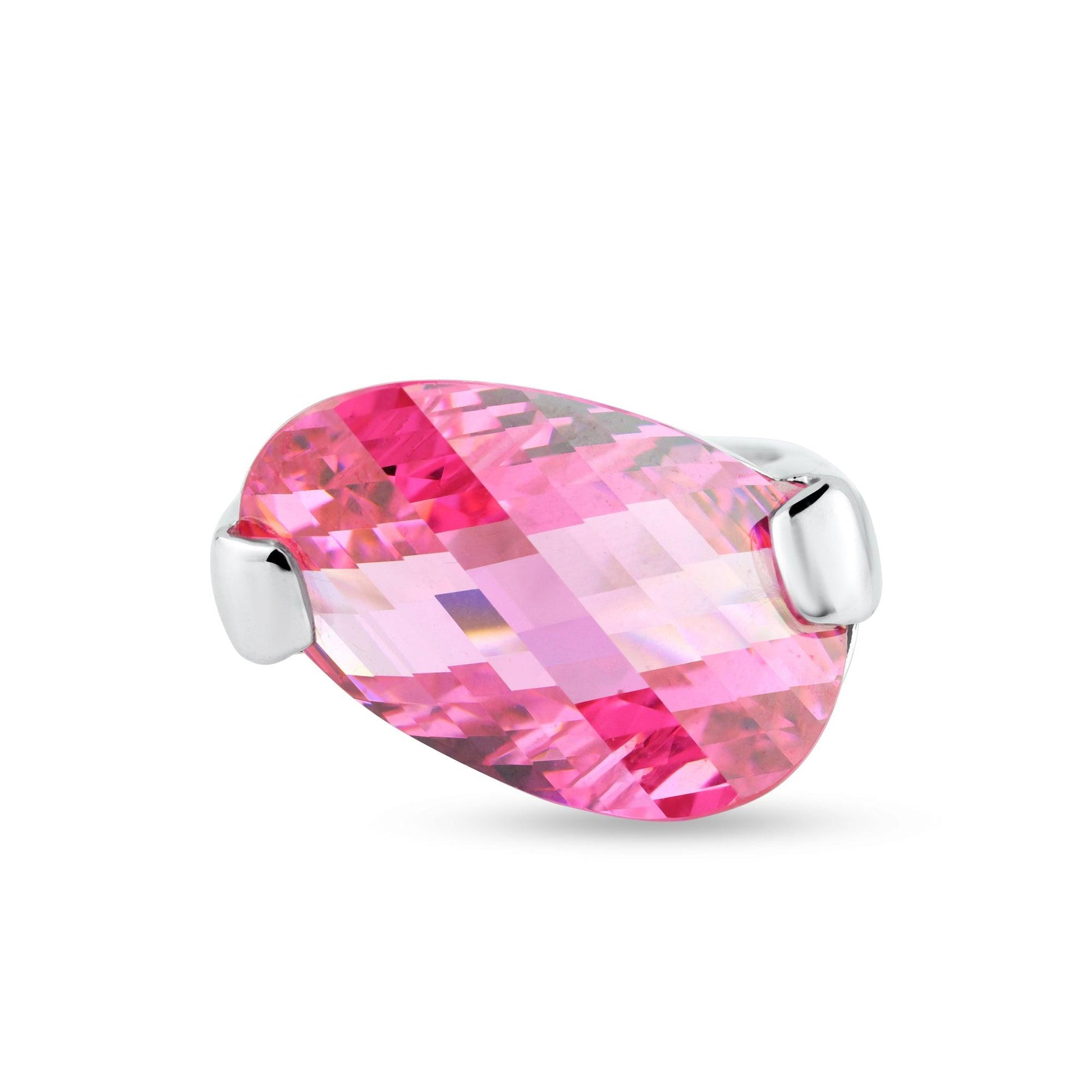 Silver 925 Rhodium Plated Big Pink CZ Ring - BGR00027