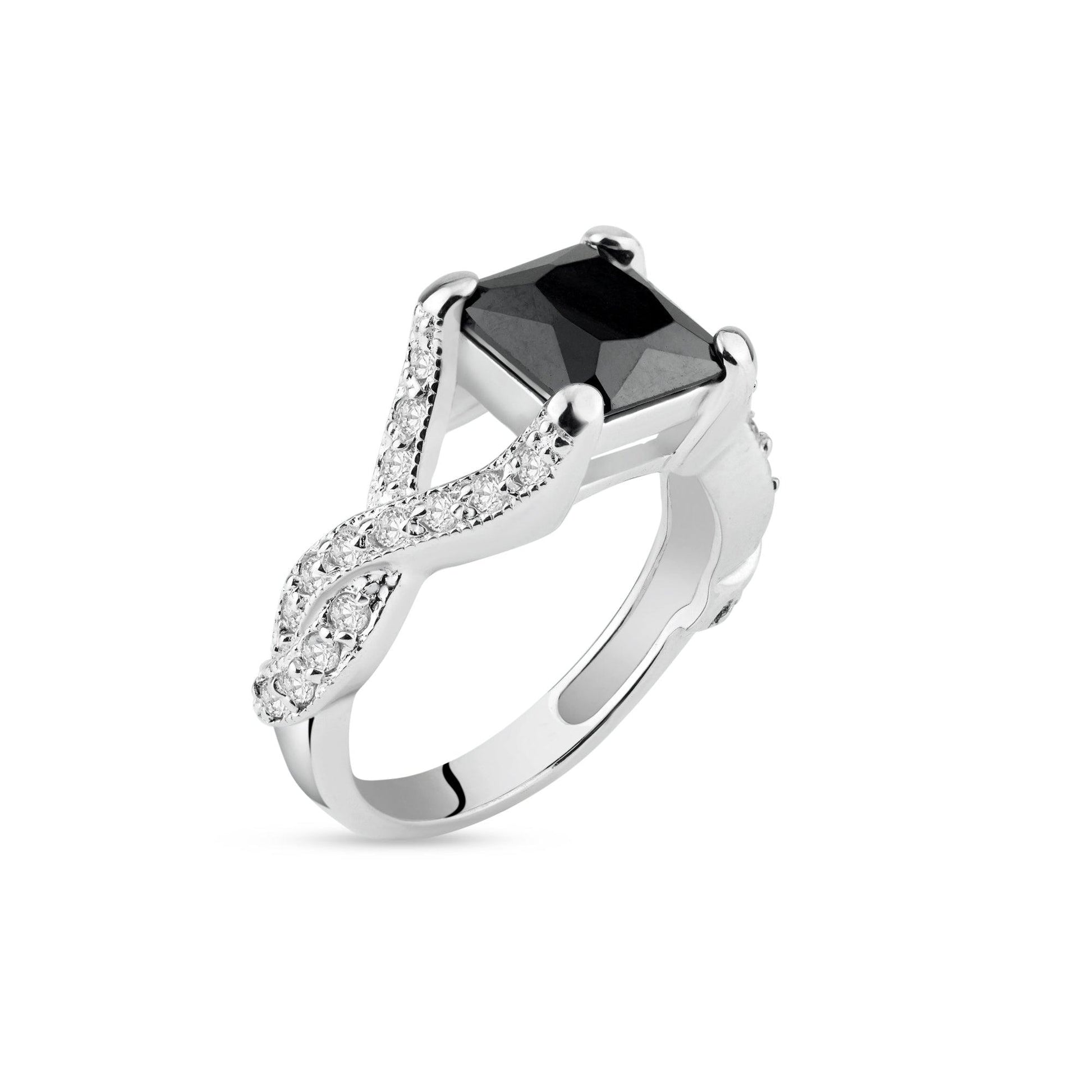Silver 925 Rhodium Plated Black Square Center and Clear CZ Ring - BGR00032