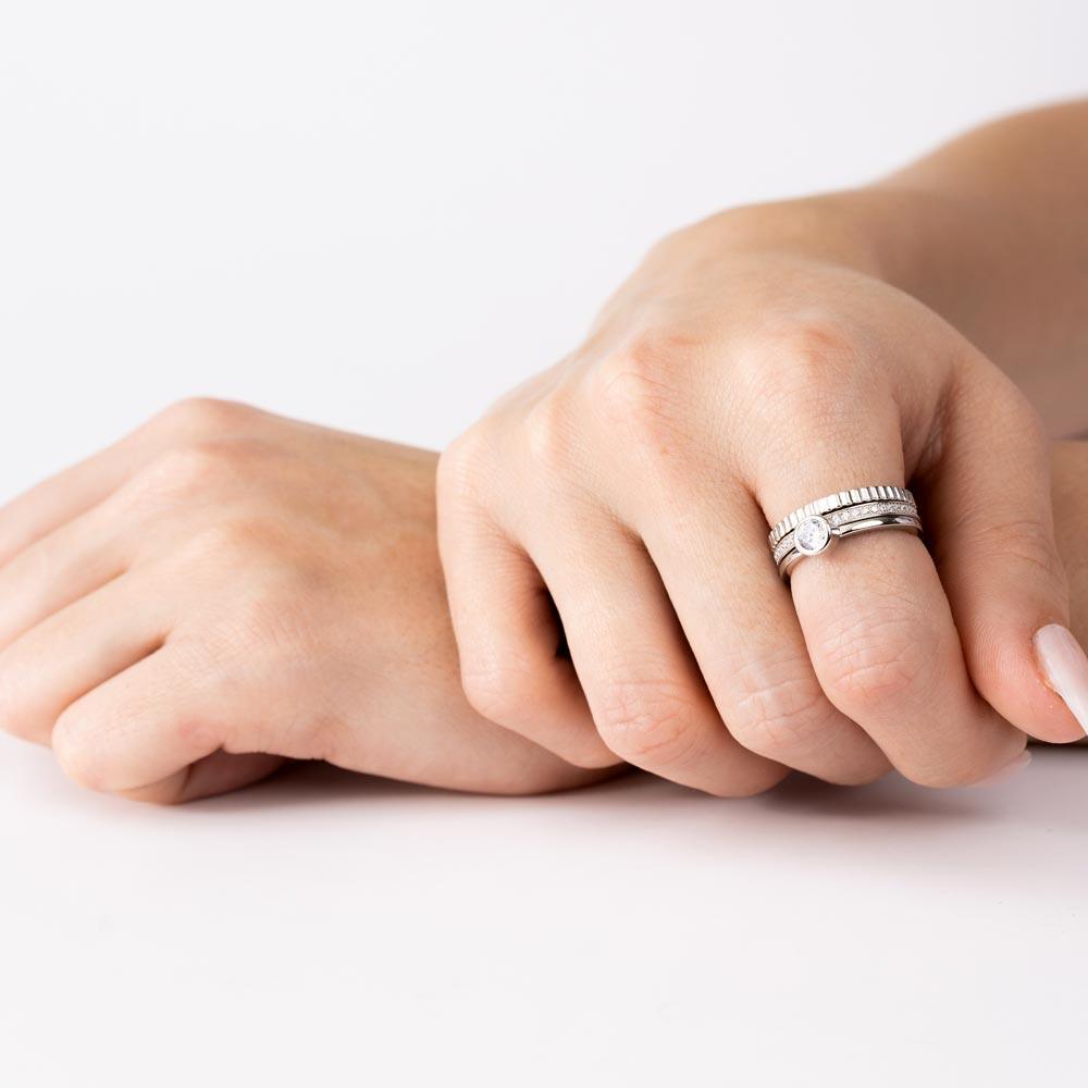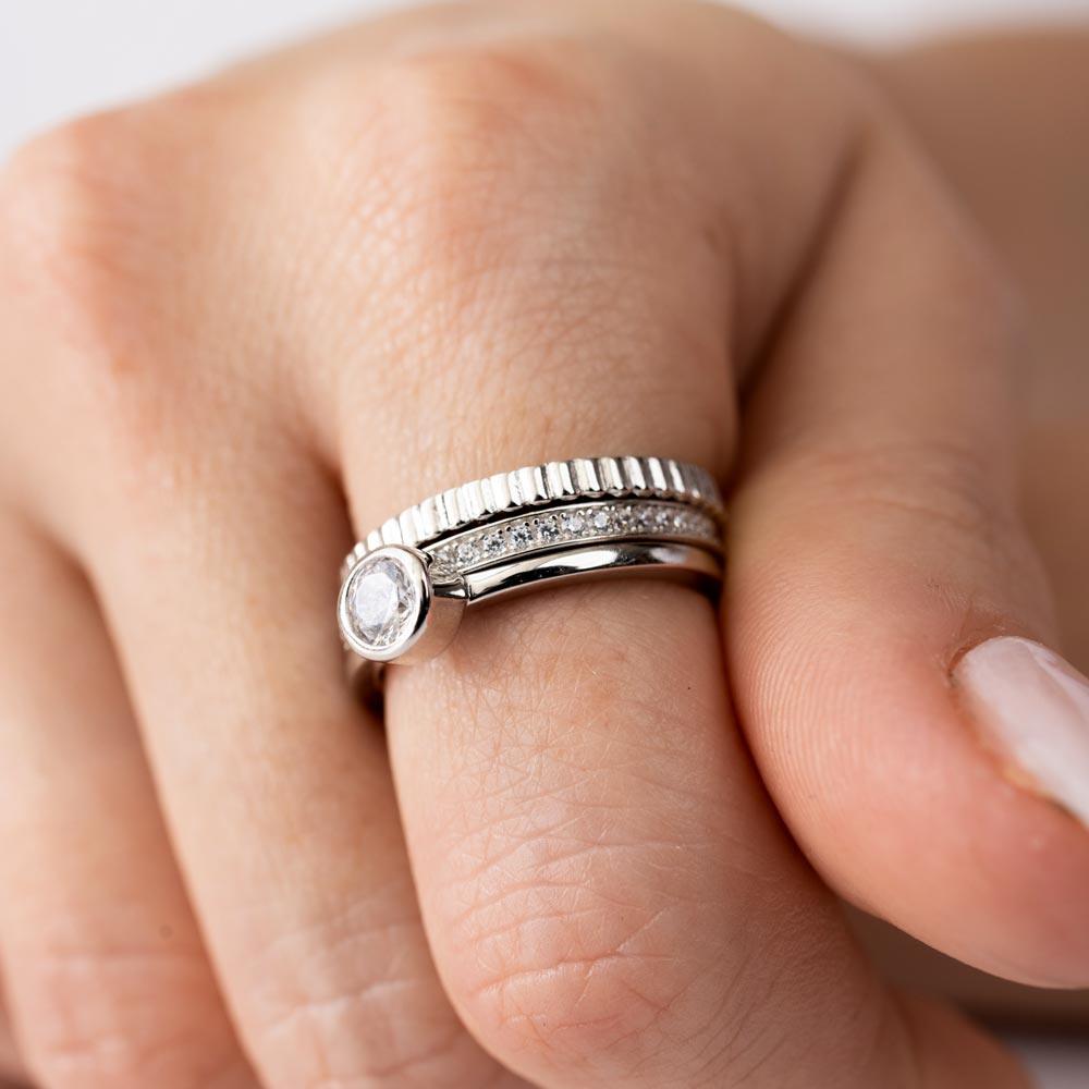 Wholesale Sterling Rhodium Plated 925 Sterling Silver Channel Center CZ Stackable Ring Set