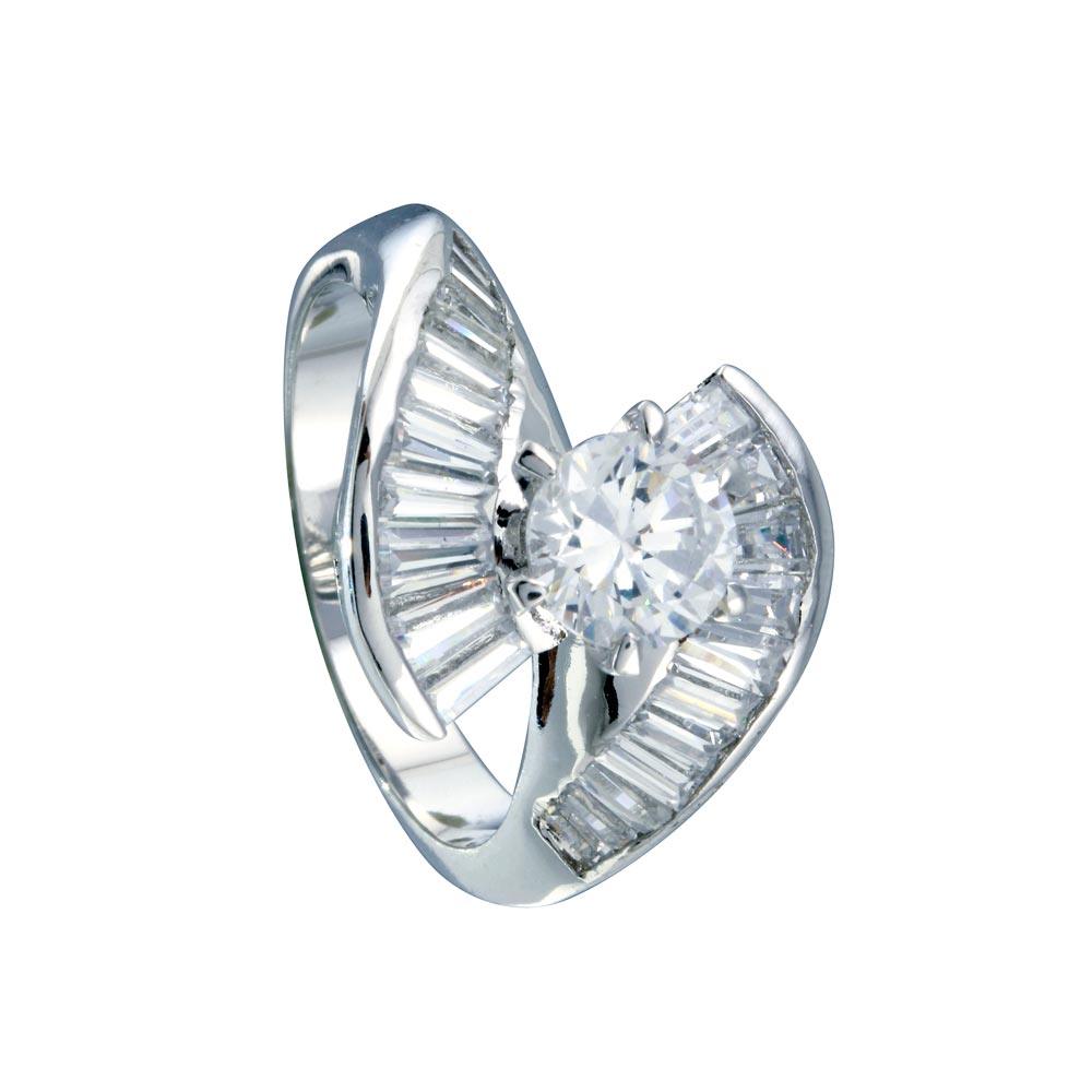 Wholesale Sterling Rhodium Plated 925 Sterling Silver Clear Baguette CZ Wave Ring