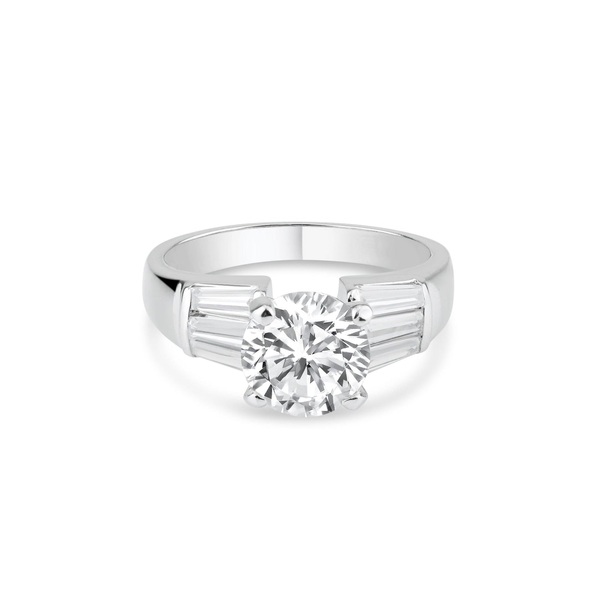 Stone | Center 1 clear 8mm Round CZ - Side 6 clear 2mm x 4mm Baguette CZ |