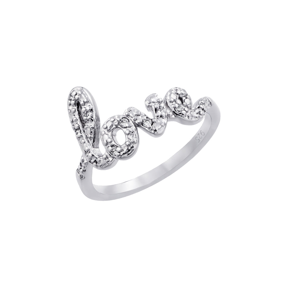Silver 925 Rhodium Plated Clear CZ Love Ring - BGR00787RHD