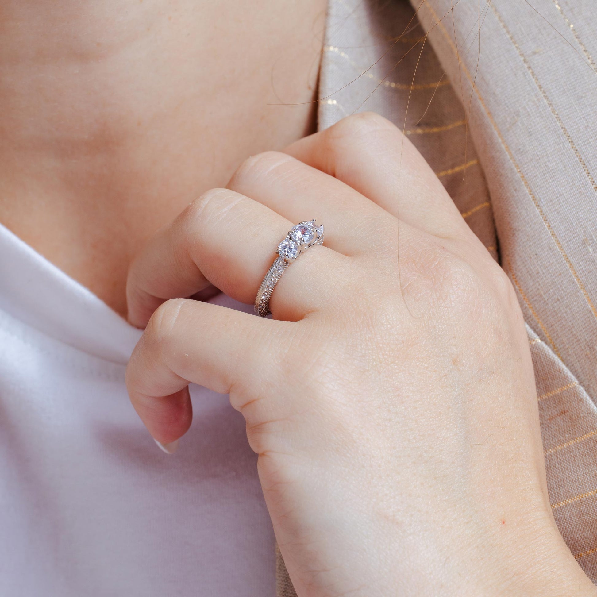 Wholesale Sterling Rhodium Plated 925 Sterling Silver Clear CZ Ornate Past Present Future Bridal Ring