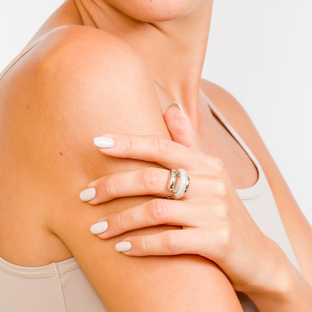 Rhodium Plated 925 Sterling Silver Clear Micro Pave CZ Twist Ring - STR01118