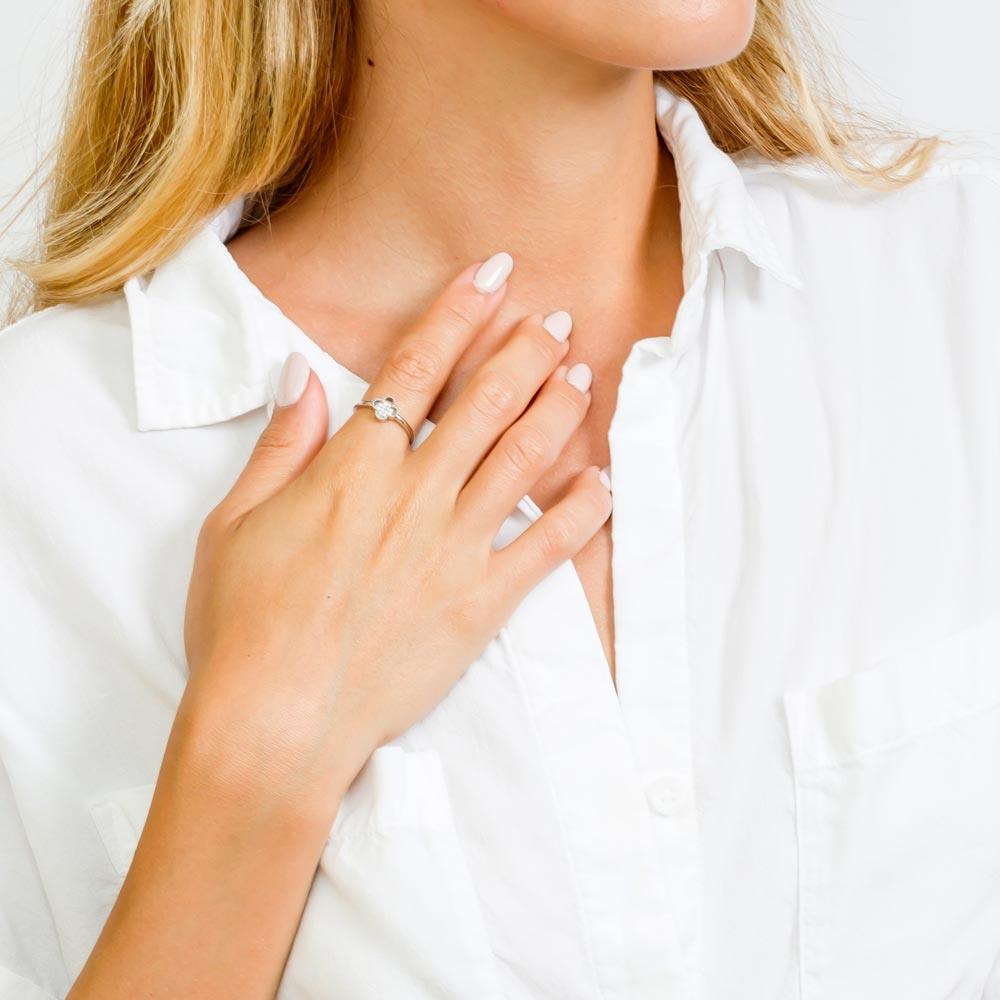 Silver 925 Rhodium Plated Clover Ring with Micro Pave CZ Stones - GMR00085RH