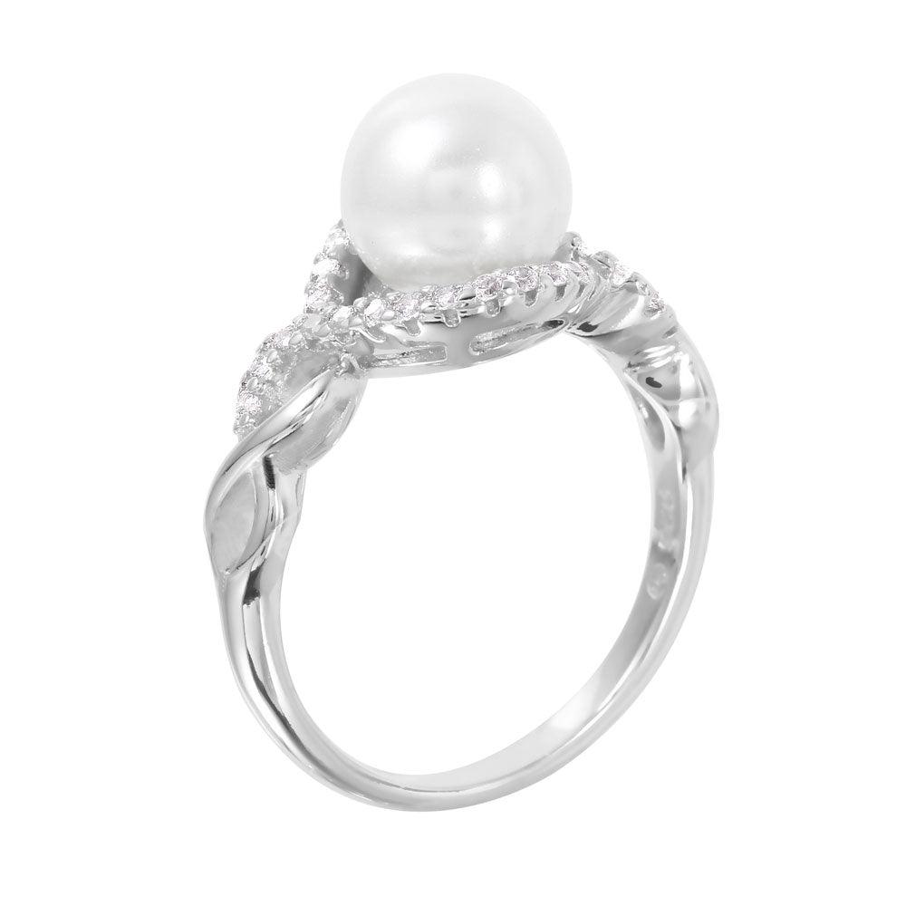 Silver 925 Rhodium Plated CZ Accented Faux Pearl Ring - BGR01000